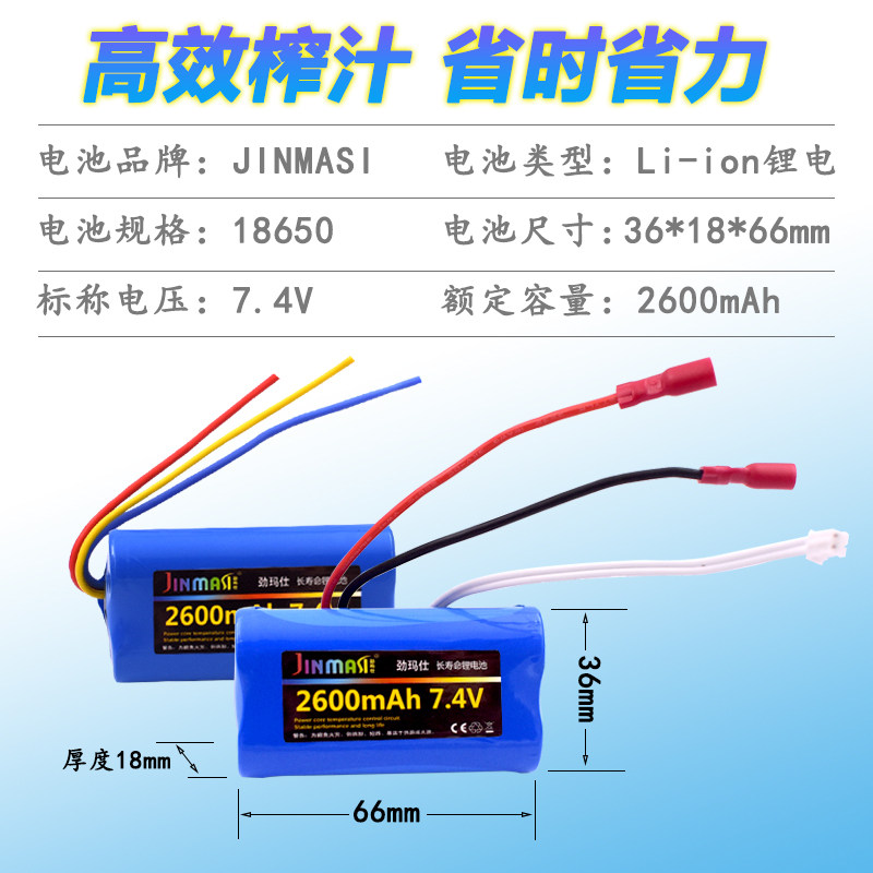 适合德尔玛/中科电/格立高/小米榨汁机果汁杯电池7.4V18650锂电池