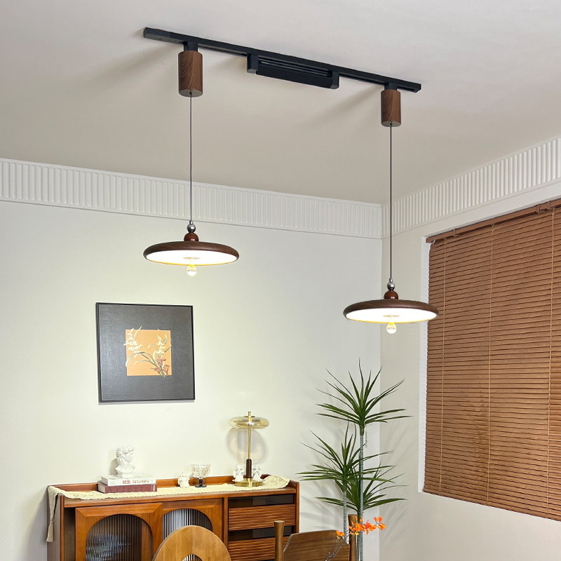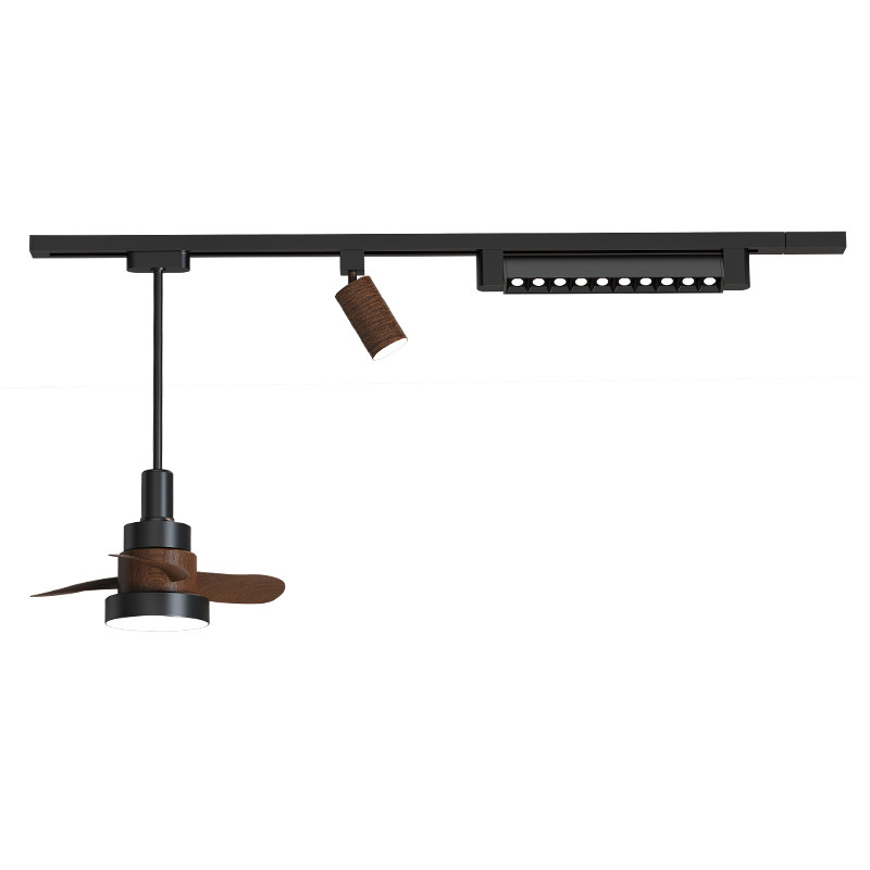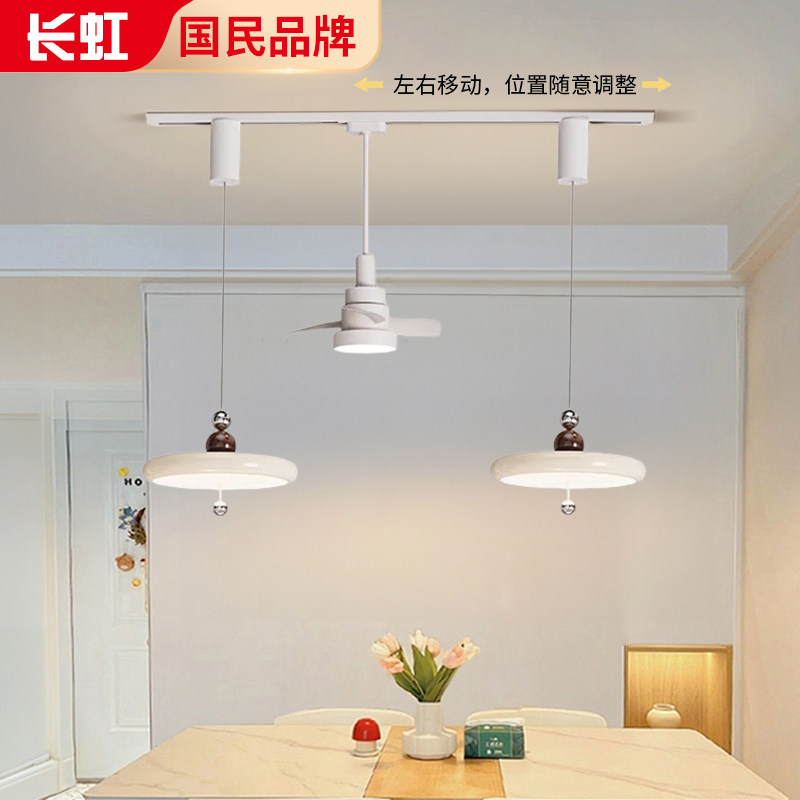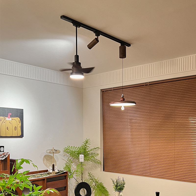 中古风轨道风扇灯可移动餐厅吊灯北欧原木风复古胡桃木色餐桌灯具