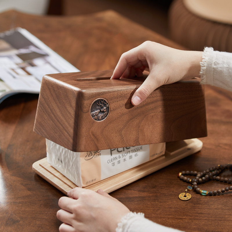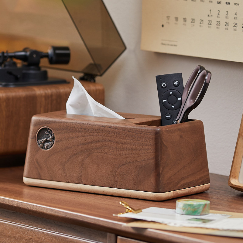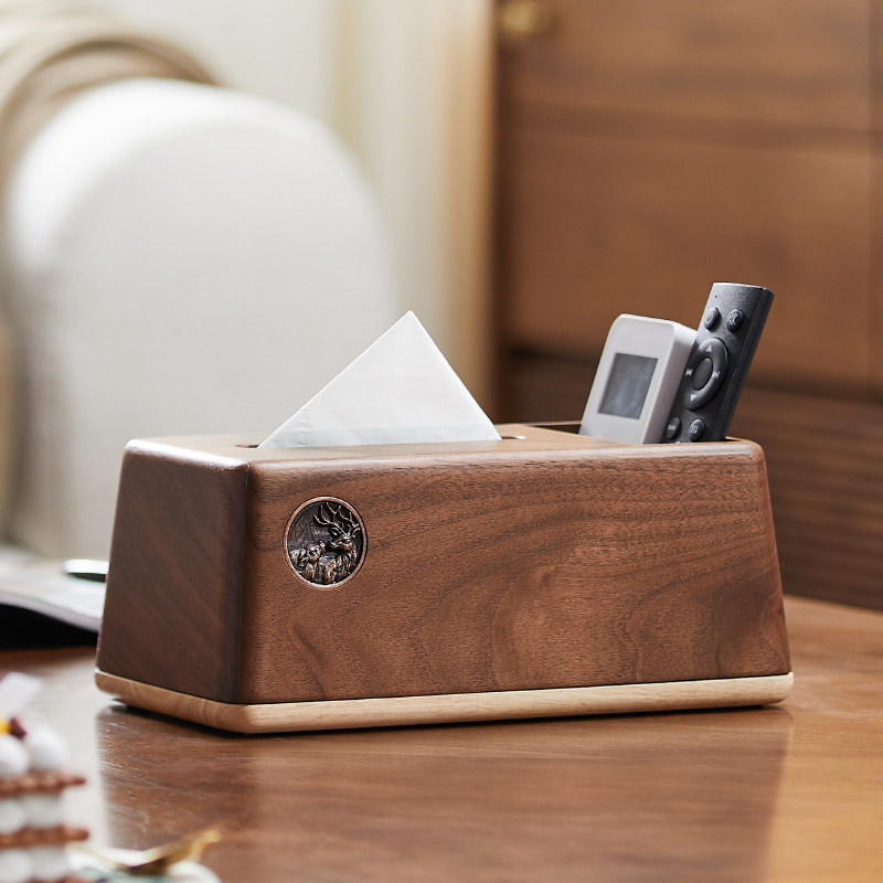 黑胡桃木轻奢纸巾盒遥控器收纳盒家用客厅茶几复古实木桌面收纳盒