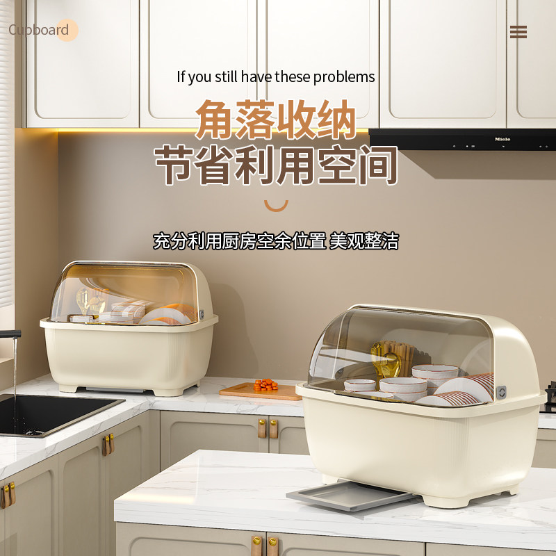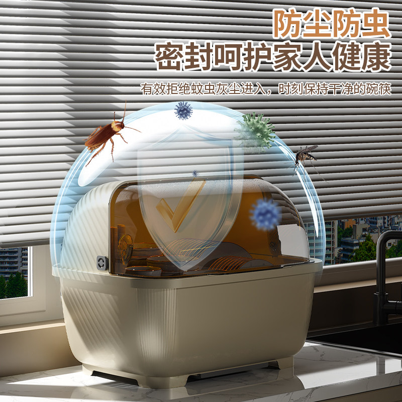 厨房碗筷收纳盒碗碟置物架碗柜带盖防尘家用多功能放碗装餐具沥水