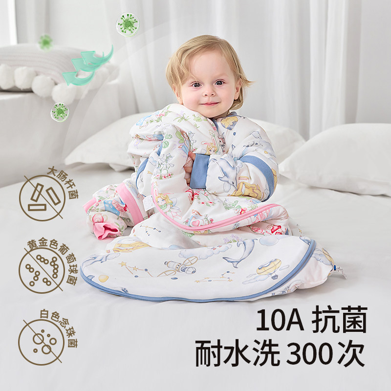 小魔箭婴儿恒温睡袋宝宝蚕丝防踢被秋冬款加厚新生儿一体四季通用