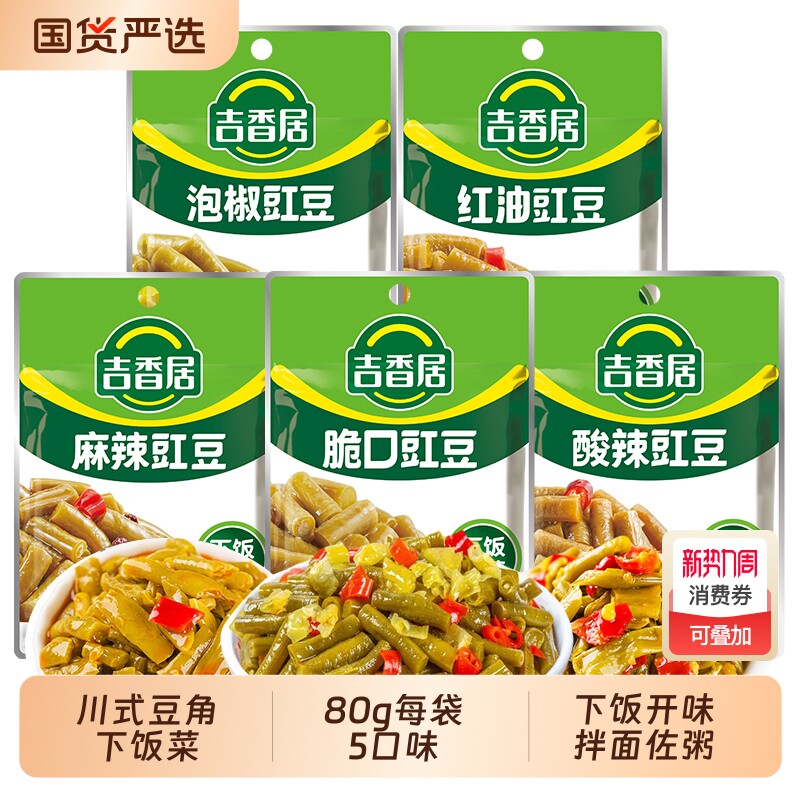 吉香居豇豆80g四川泡椒豇豆红油豇豆下饭酸豆角榨菜酸辣袋装泡菜