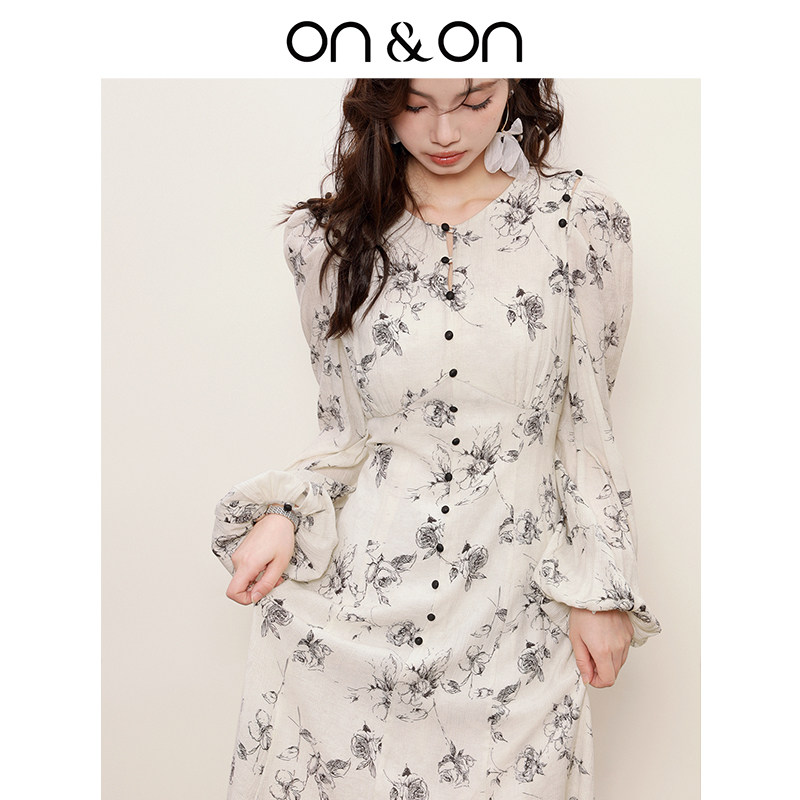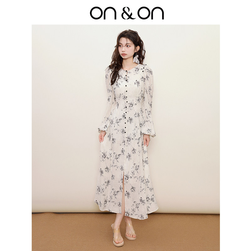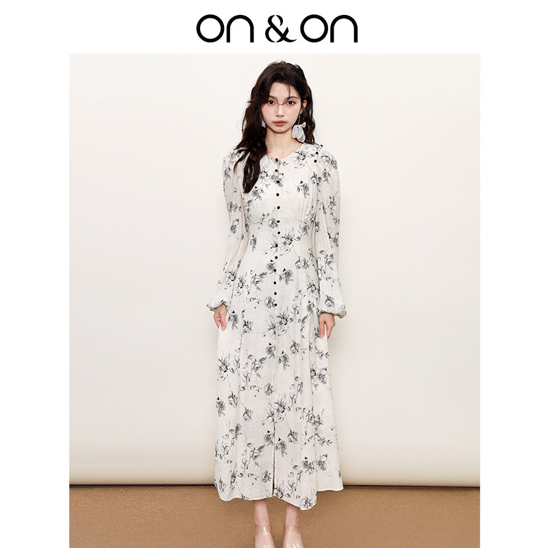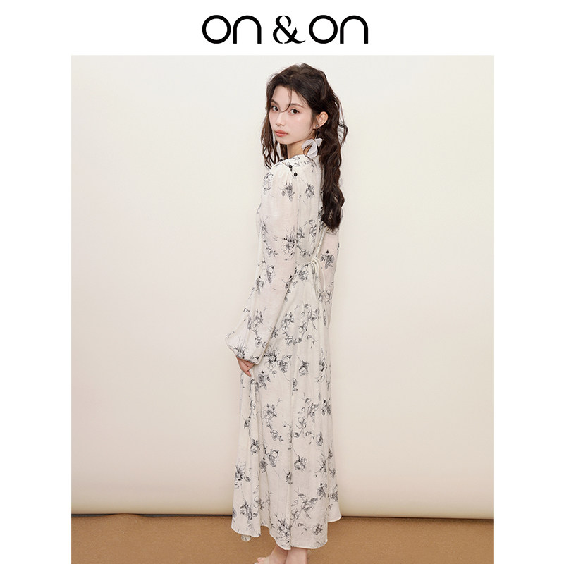 ON&ON/安乃安2025秋季新款中式艺术印花优雅古典气质长款连衣裙