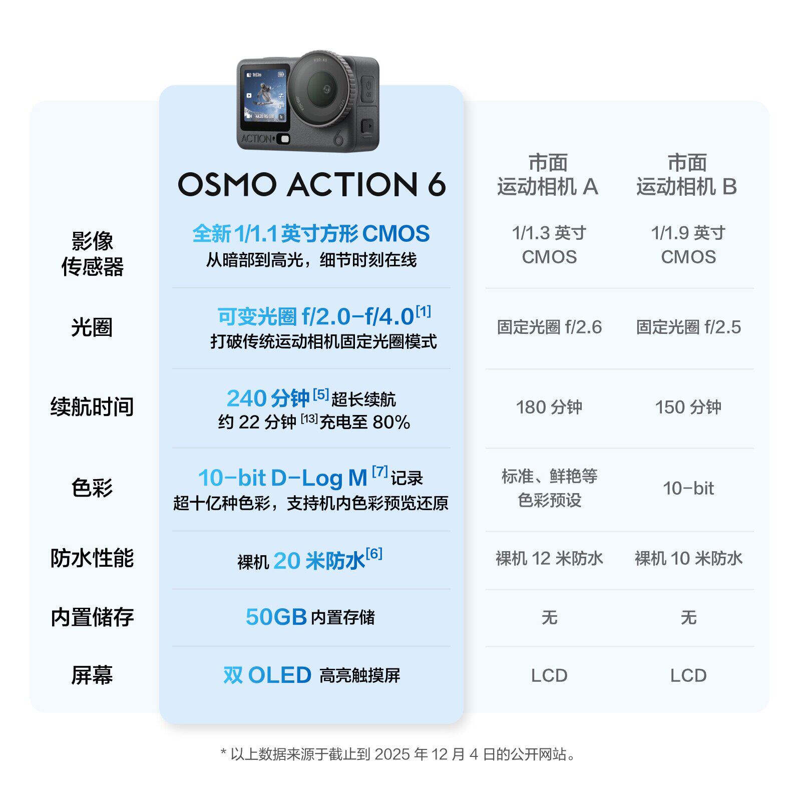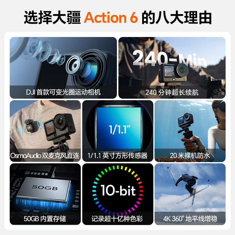 【京东/顺丰】大疆Osmo Action 6运动相机4K高清户外骑行滑雪潜水