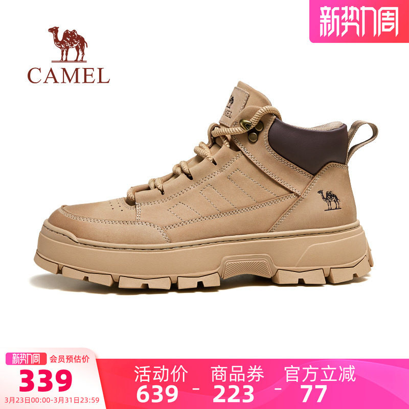 骆驼男鞋高帮鞋2026新款防滑时尚百搭厚底英伦真皮休闲滑板鞋男士