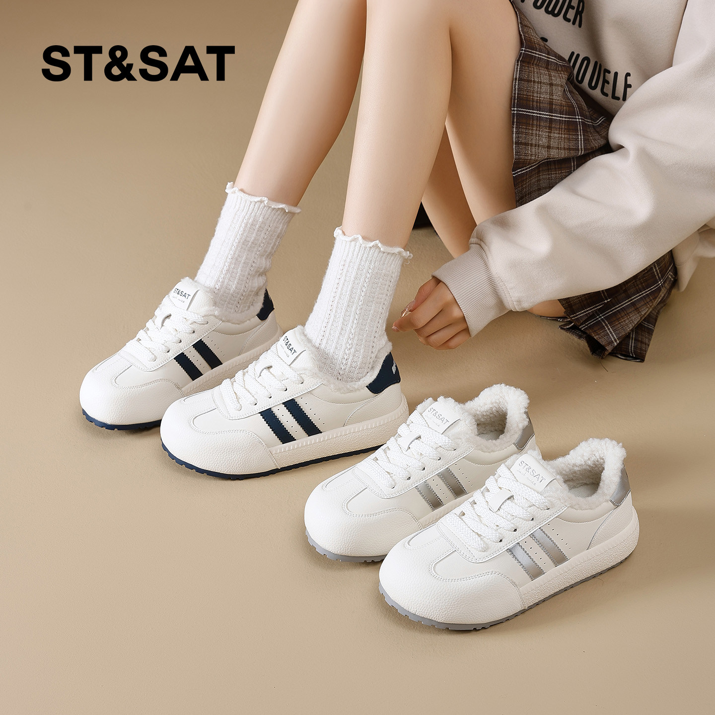 星期六小白鞋女冬2025冬季新款女鞋女款爆款鞋子加绒加厚保暖棉鞋