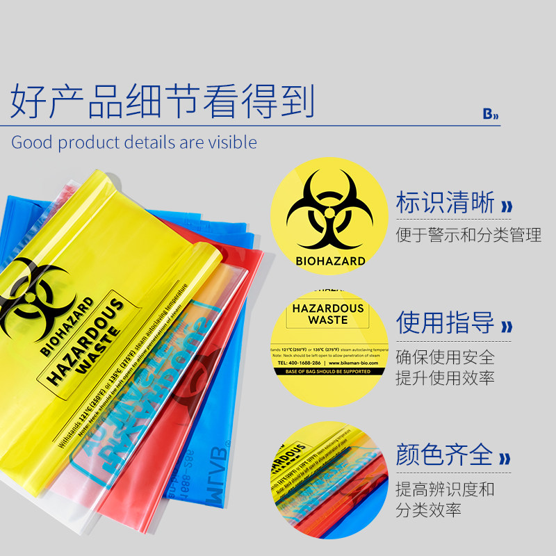 比克曼生物耐高温垃圾袋生物安全袋医疗废物灭菌袋危险品处理袋