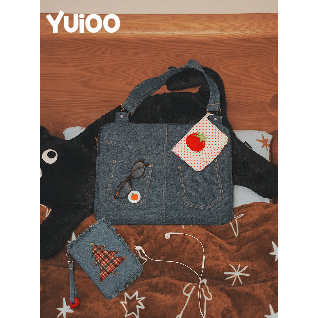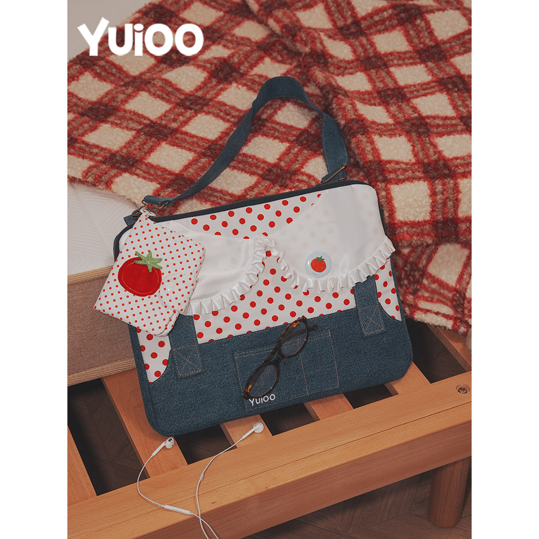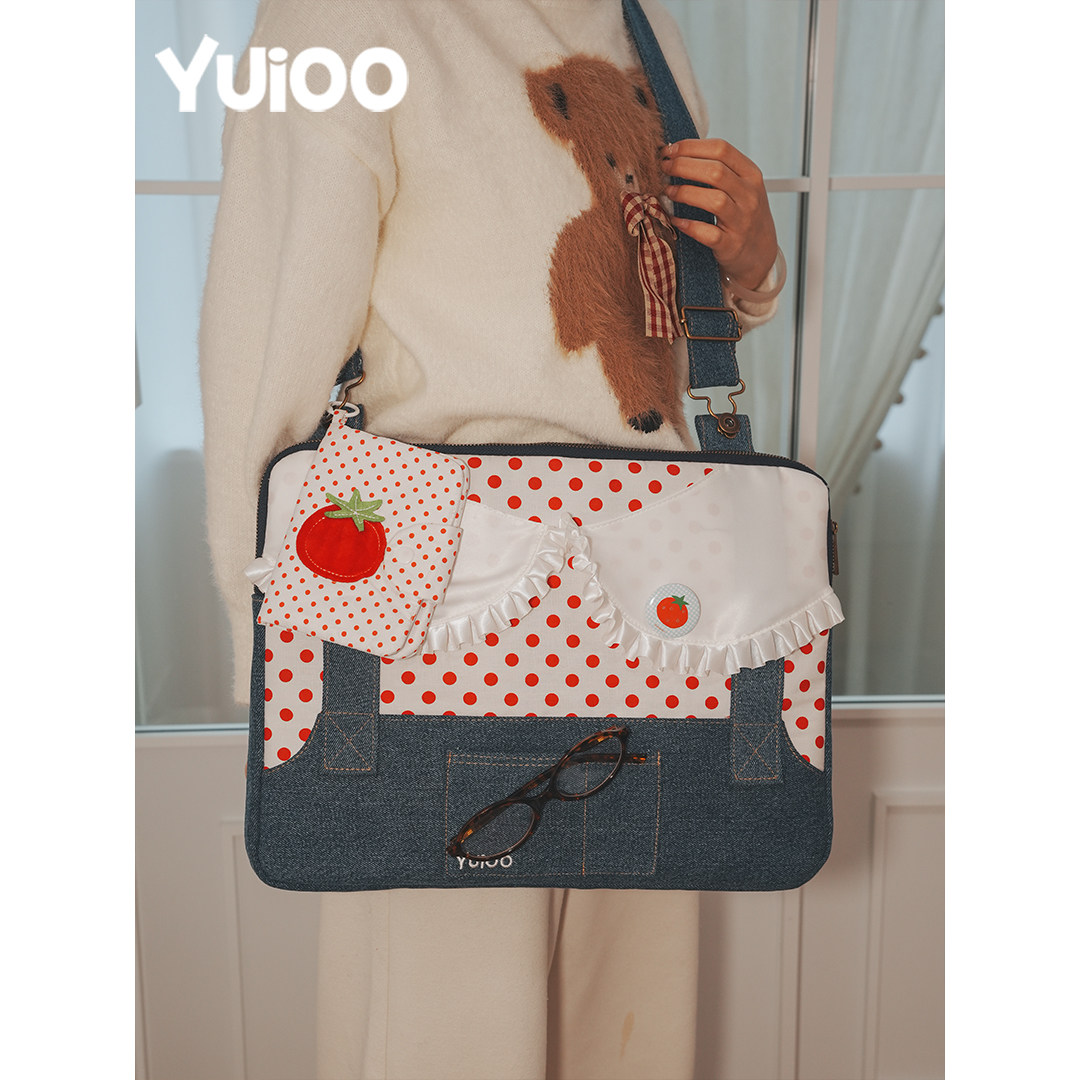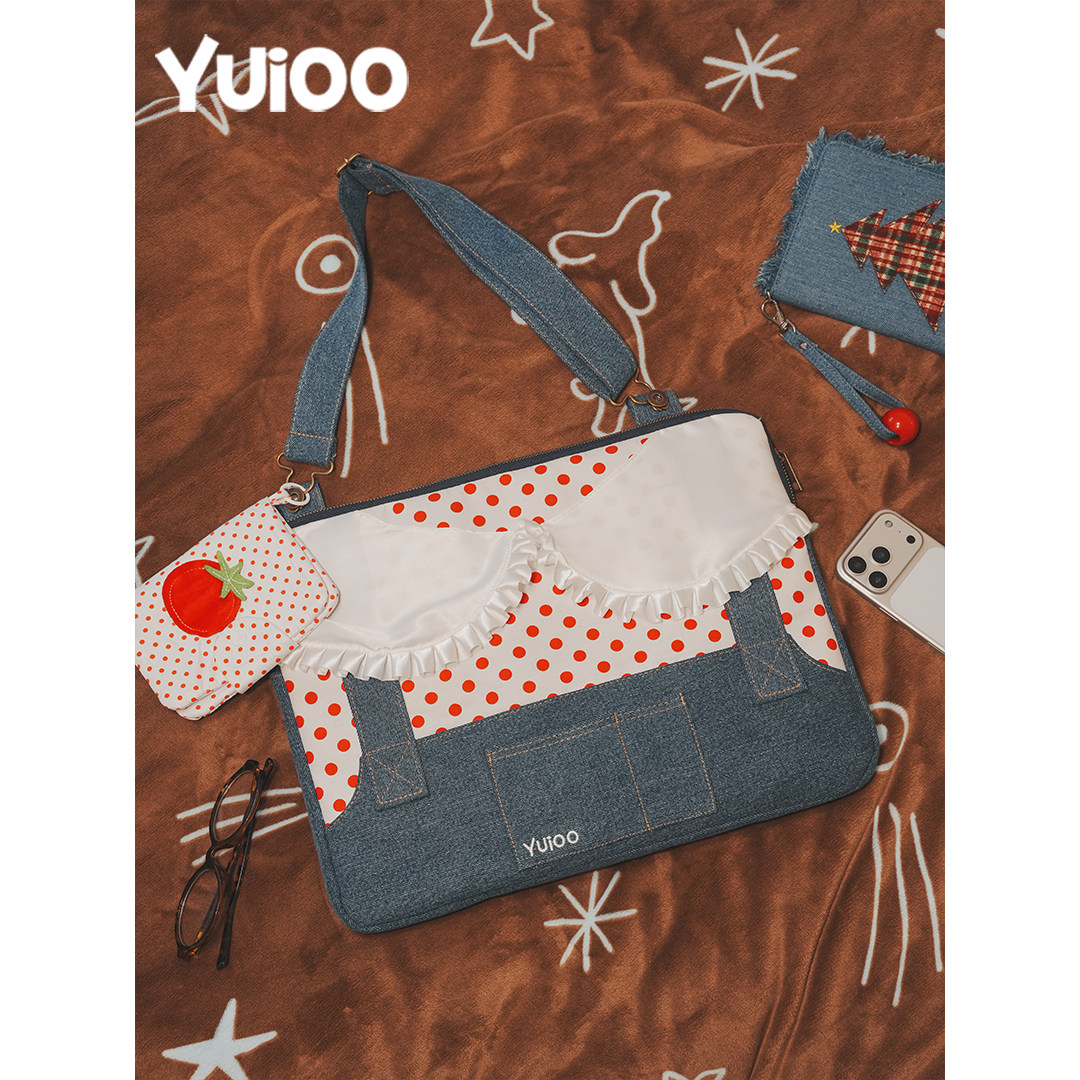 Yuioo原创昭和波点牛仔背带裤电脑包日常手提通勤休闲可爱防摔休闲笔记本平板包