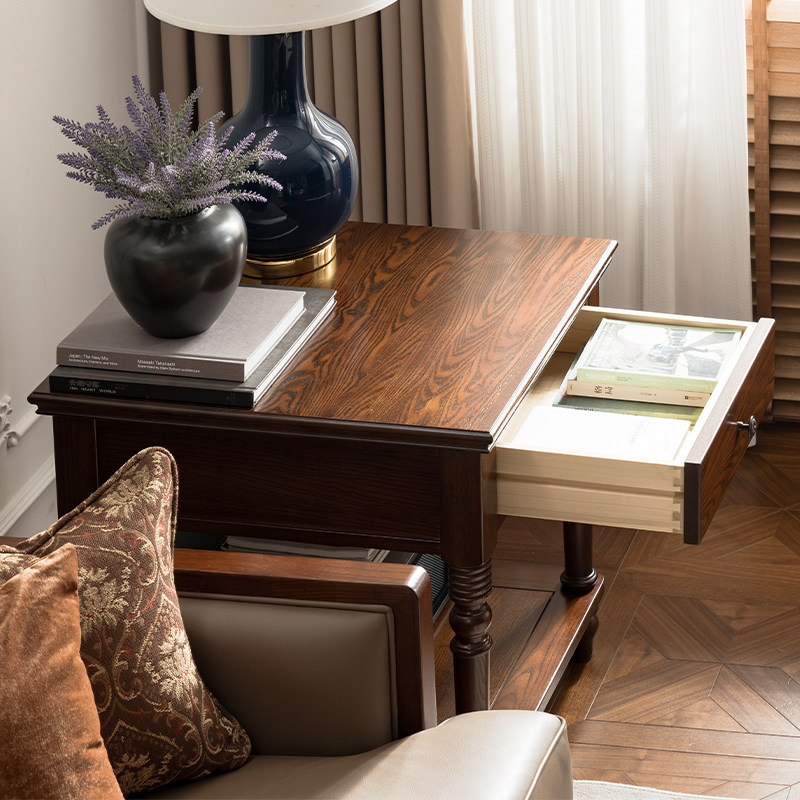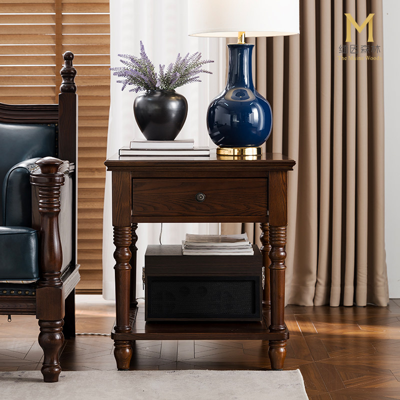 沙发边柜侧边柜轻奢美式茶几实木边几客厅白蜡木角几旁缅因森林