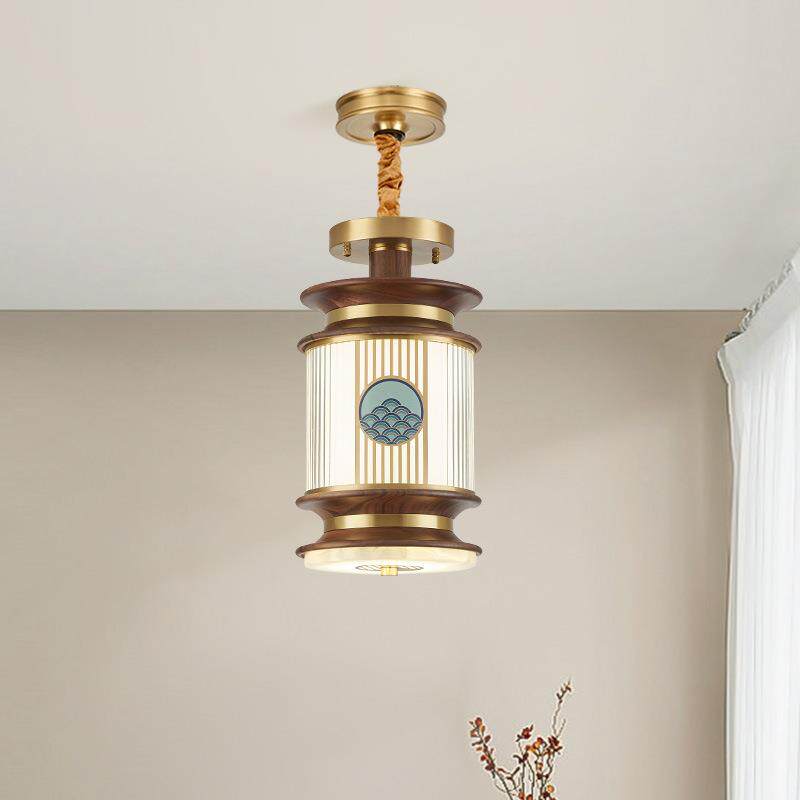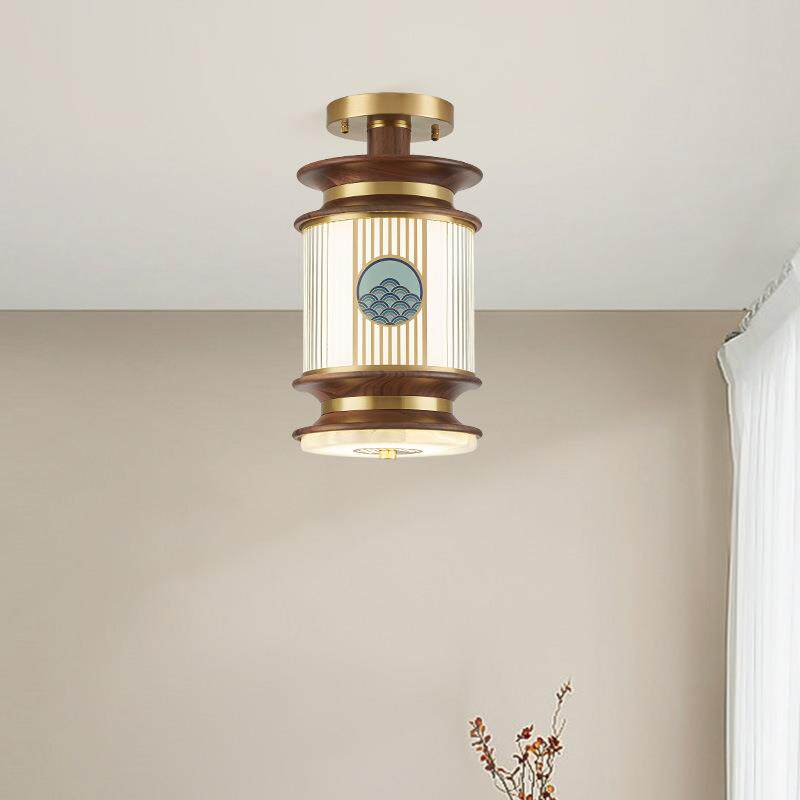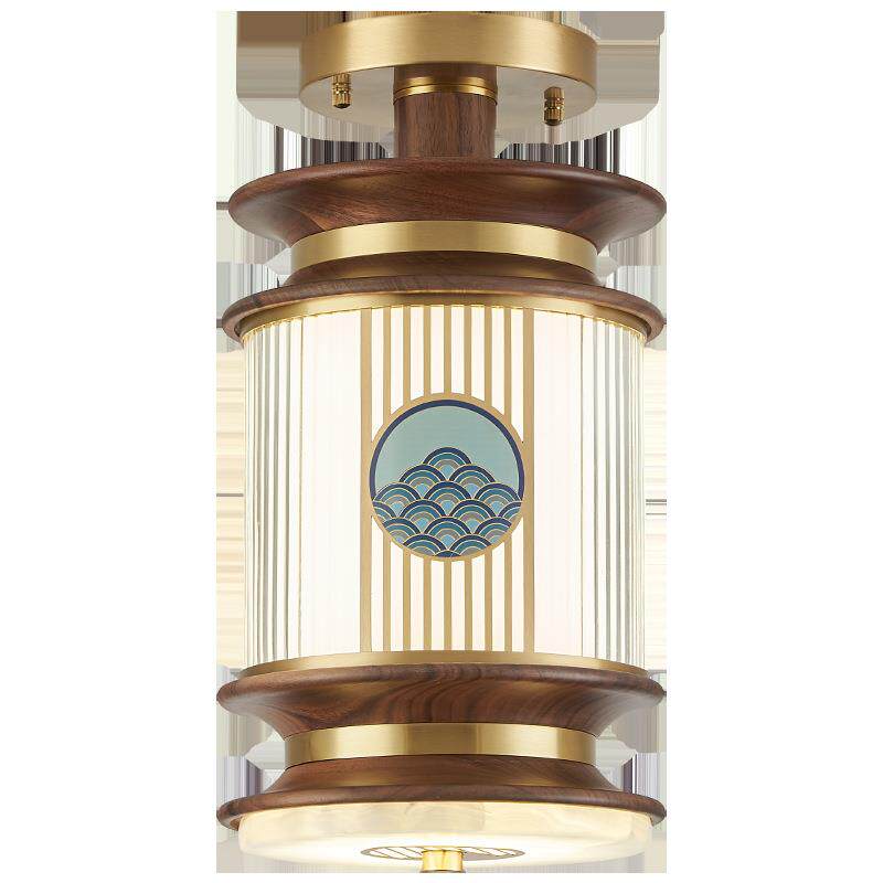 【海纳百川】新中式全铜过道灯黑胡桃实木阳台灯吸吊两用玄关灯具