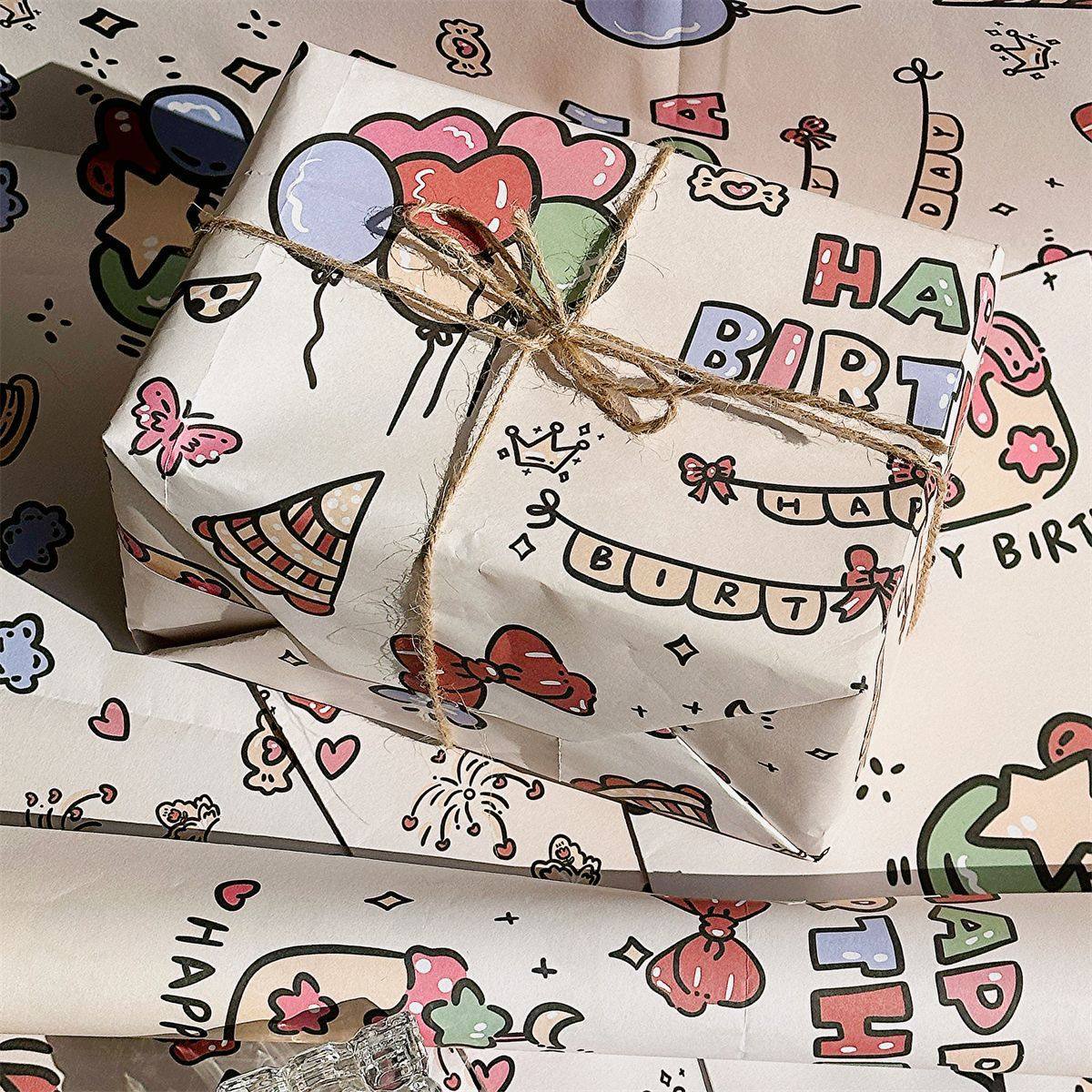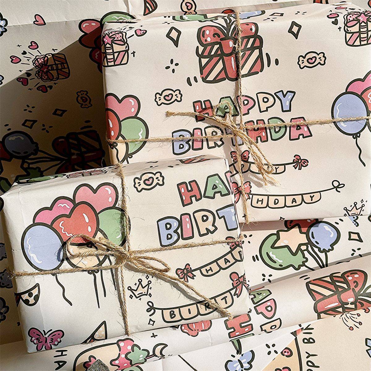 生日快乐ins风日常礼物包装纸原创设计打包纸卡通高颜值包装纸
