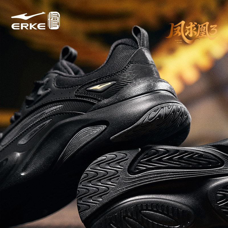 鸿星尔克全黑色男鞋秋冬新款休闲鞋公务通勤跑步鞋防滑软底运动鞋