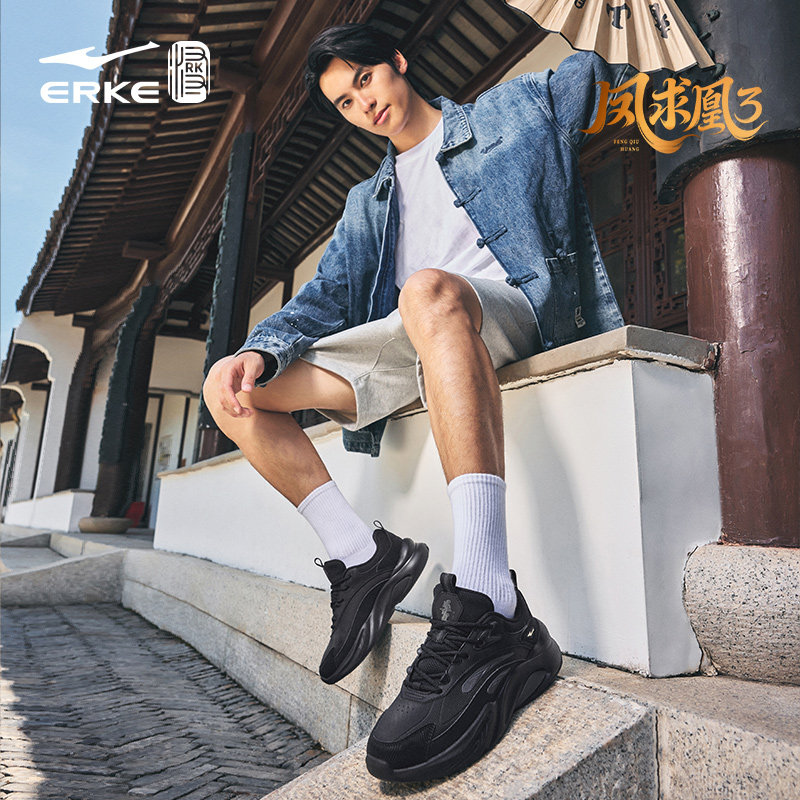 鸿星尔克新款国潮男鞋冬季厚底老爹鞋百搭运动鞋软底增高休闲鞋