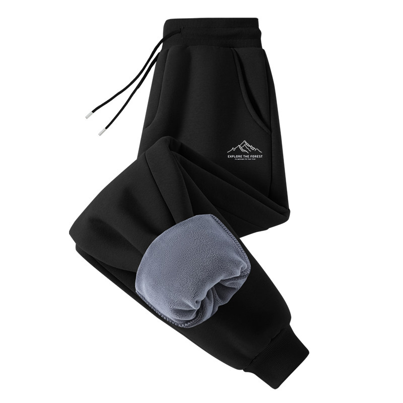 GV真维斯男裤子冬加厚2025新款加绒卫裤男士黑色束脚运动休闲裤A