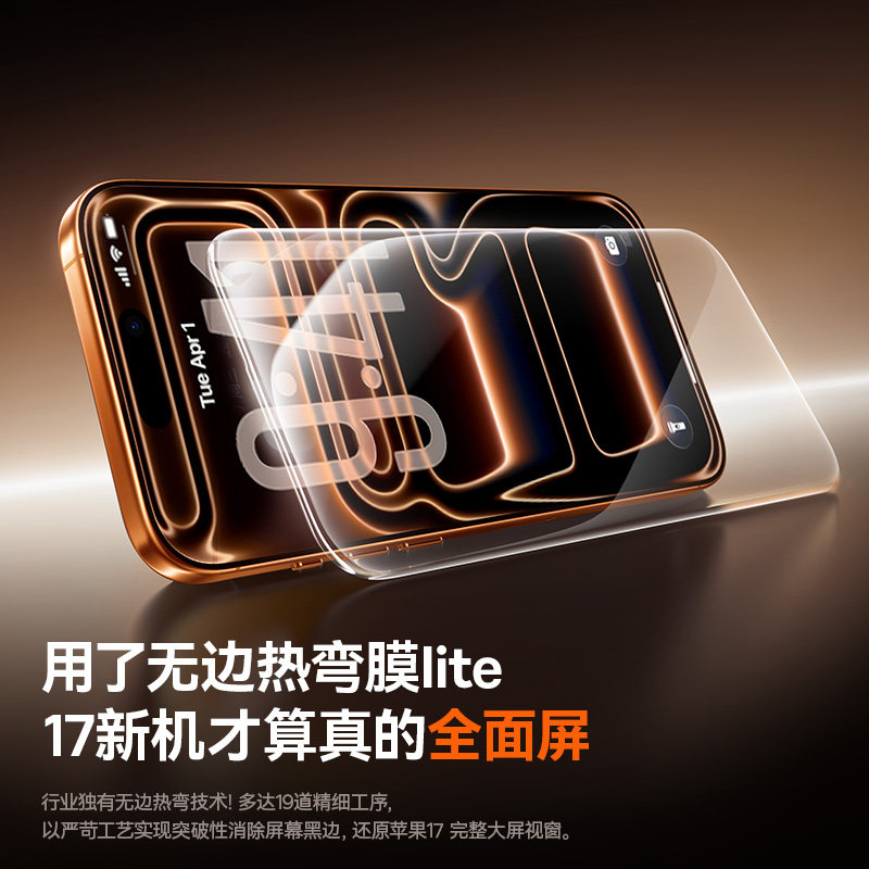 倍思新款3D热弯膜适用苹果iPhone17钢化膜16ProMax手机贴膜15Pro屏幕全覆盖17pm无黑边防指纹官保护防摔ip17