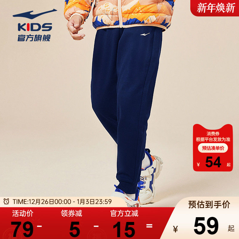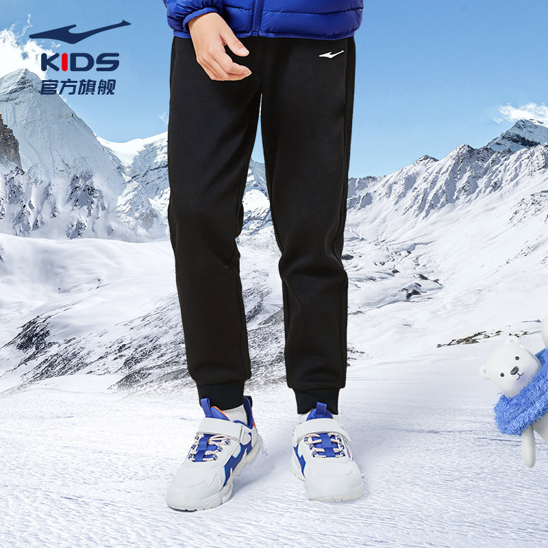 鸿星尔克童装男童运动裤冬款学生保暖棉裤长裤儿童卫裤中大童裤子