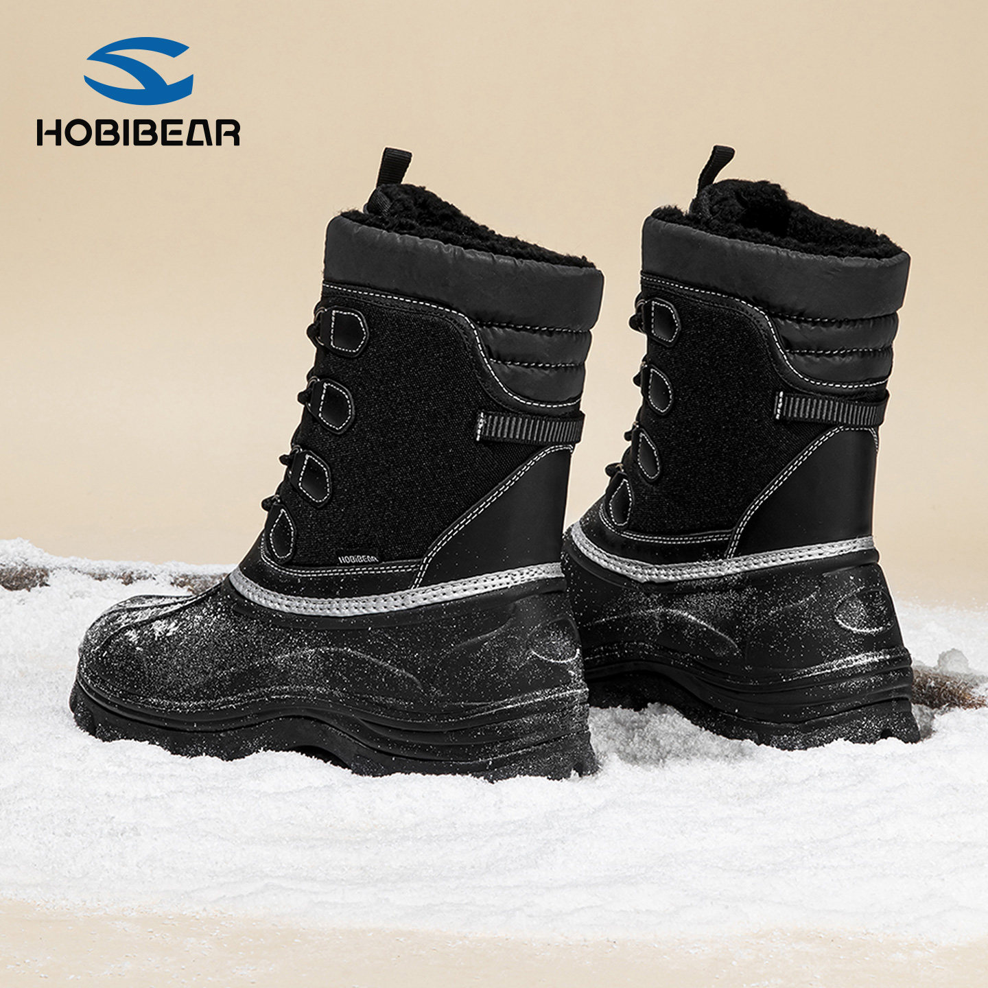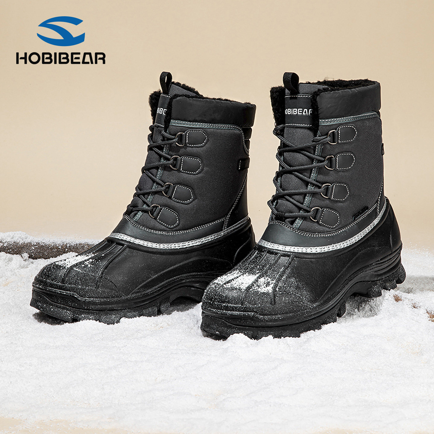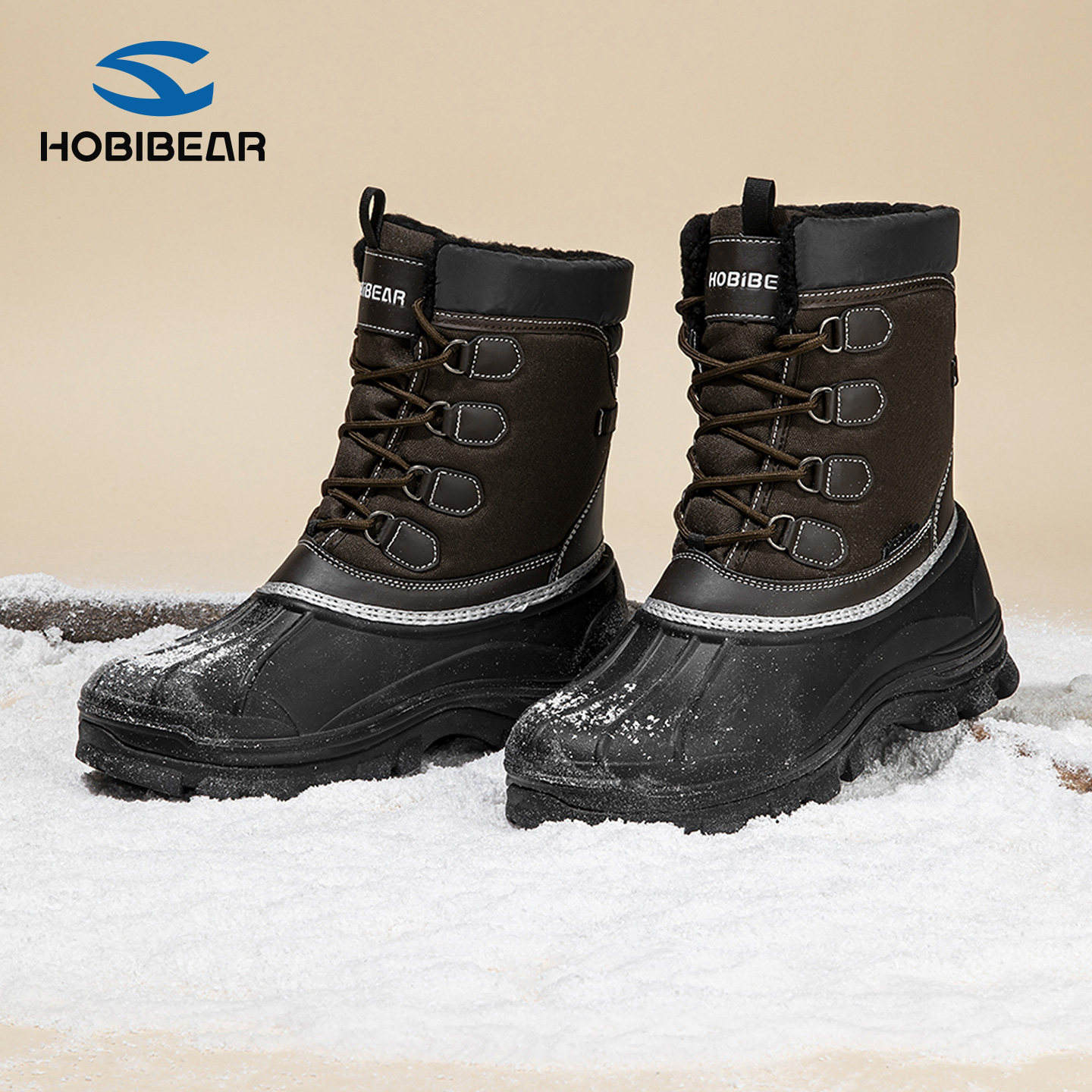 HOBIBEAR雪地靴简约帅气舒适防滑2026冬季保暖棉靴男士百搭户外