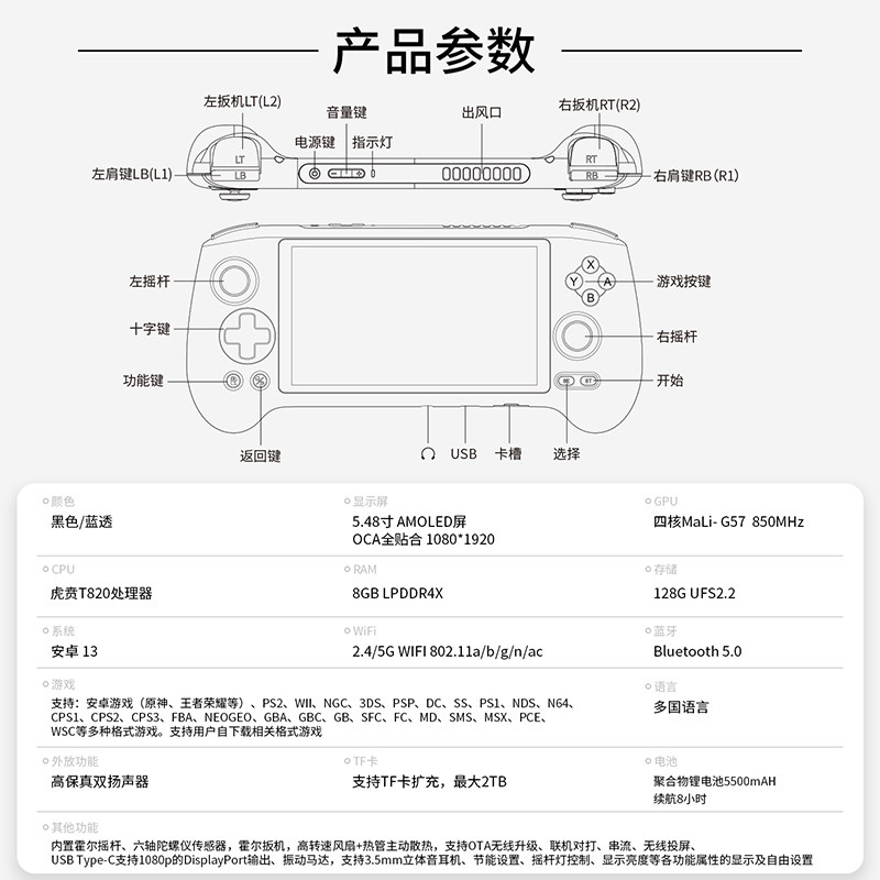 【新款上市】ANBERNIC安伯尼克RG556游戏掌机串流连游戏手柄双人安卓原神王者连电视战神2送男友礼物预装天马