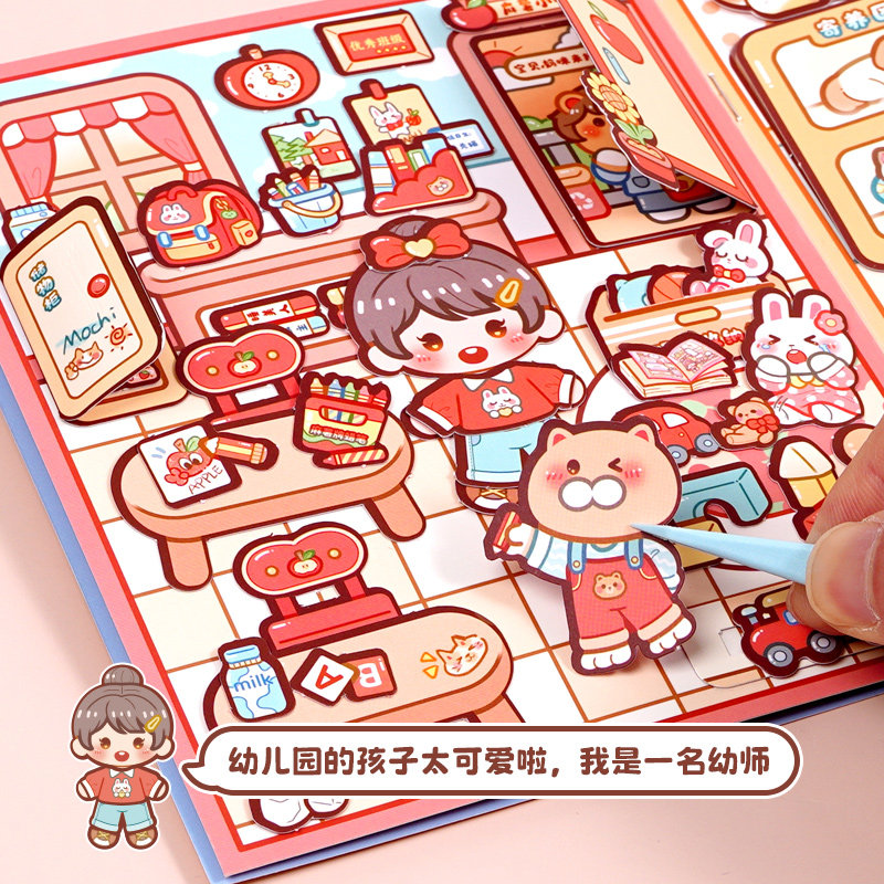 萌崽新款学霸学渣果冻贴纸安静书儿童免裁剪手工粘贴DIY女孩趣味玩具