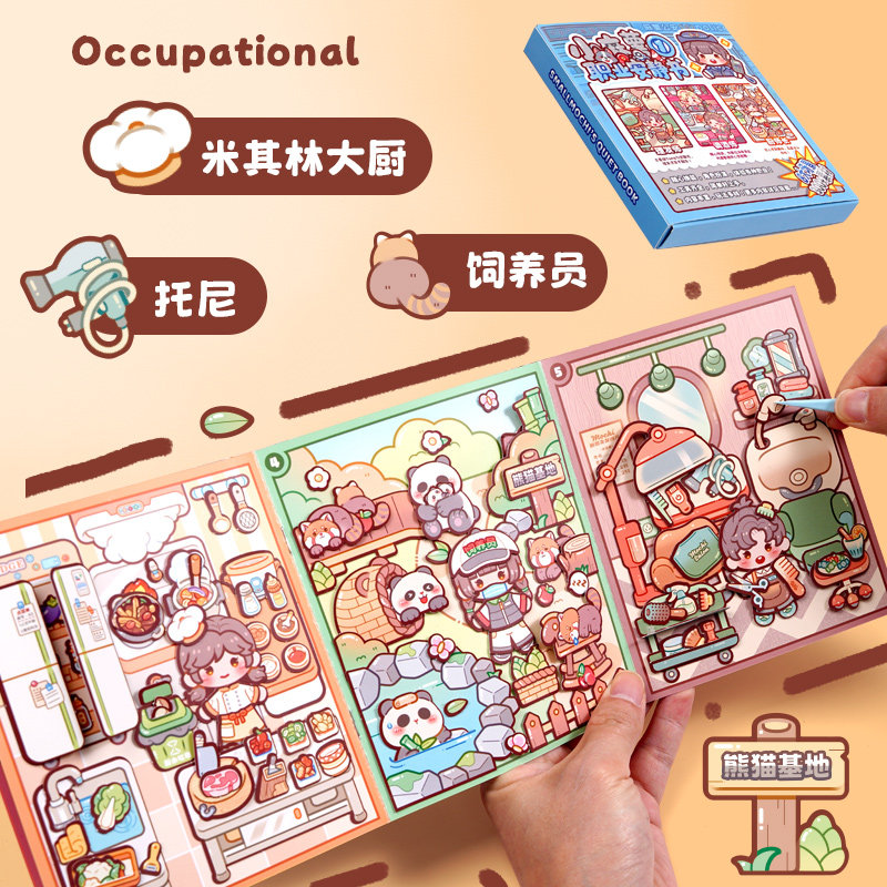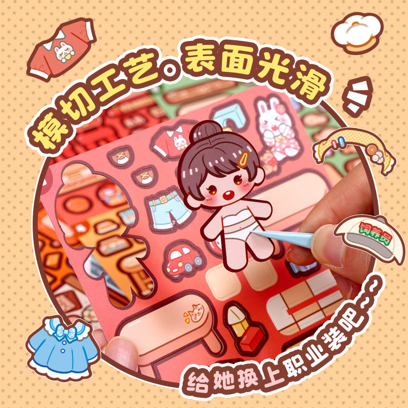 duga多加小麻薯职业安静书2026新款换装贴纸女孩儿童手工diy免裁剪可爱卡通立体粘贴画贴纸本安静书解压玩具