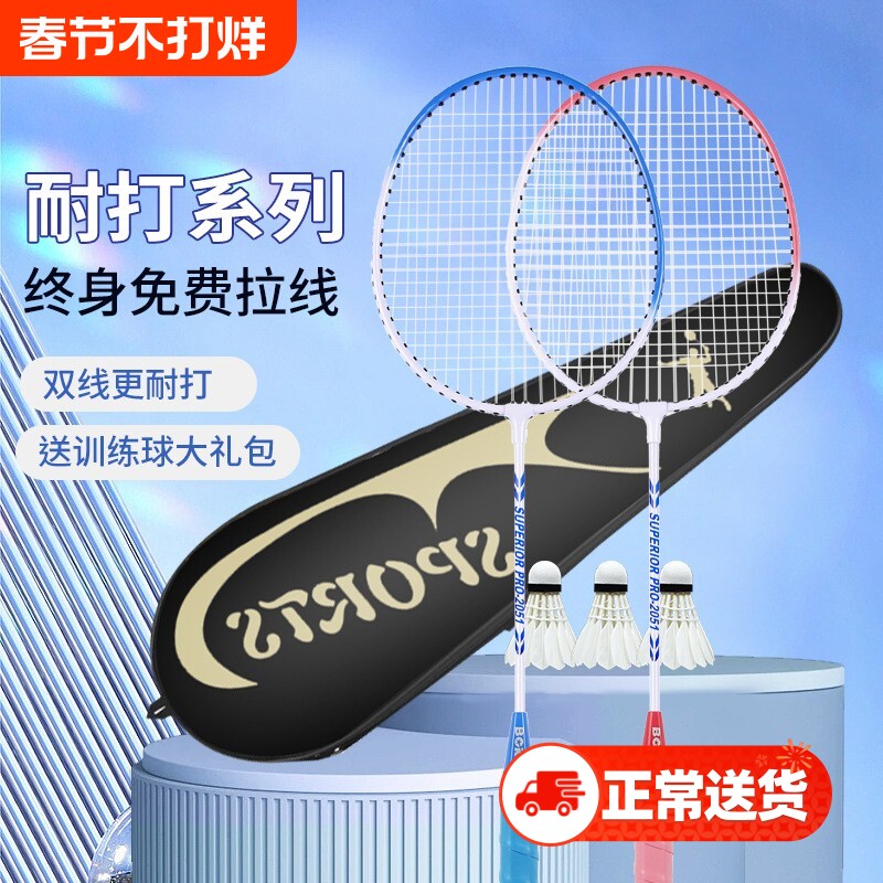 博卡训练羽毛球拍正品旗舰店儿童小学生成人耐打双拍套装超轻专业