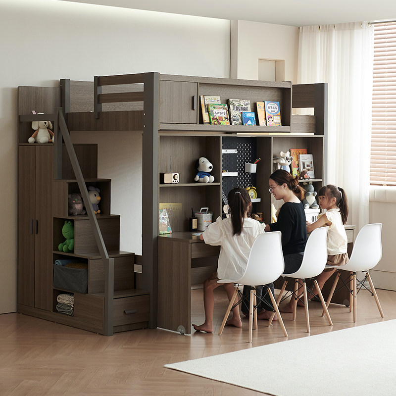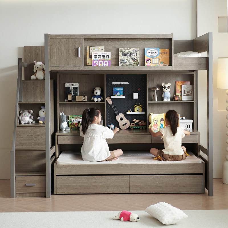 实木上床下桌组合床儿童带书桌衣柜一体子母双层多功能高低床