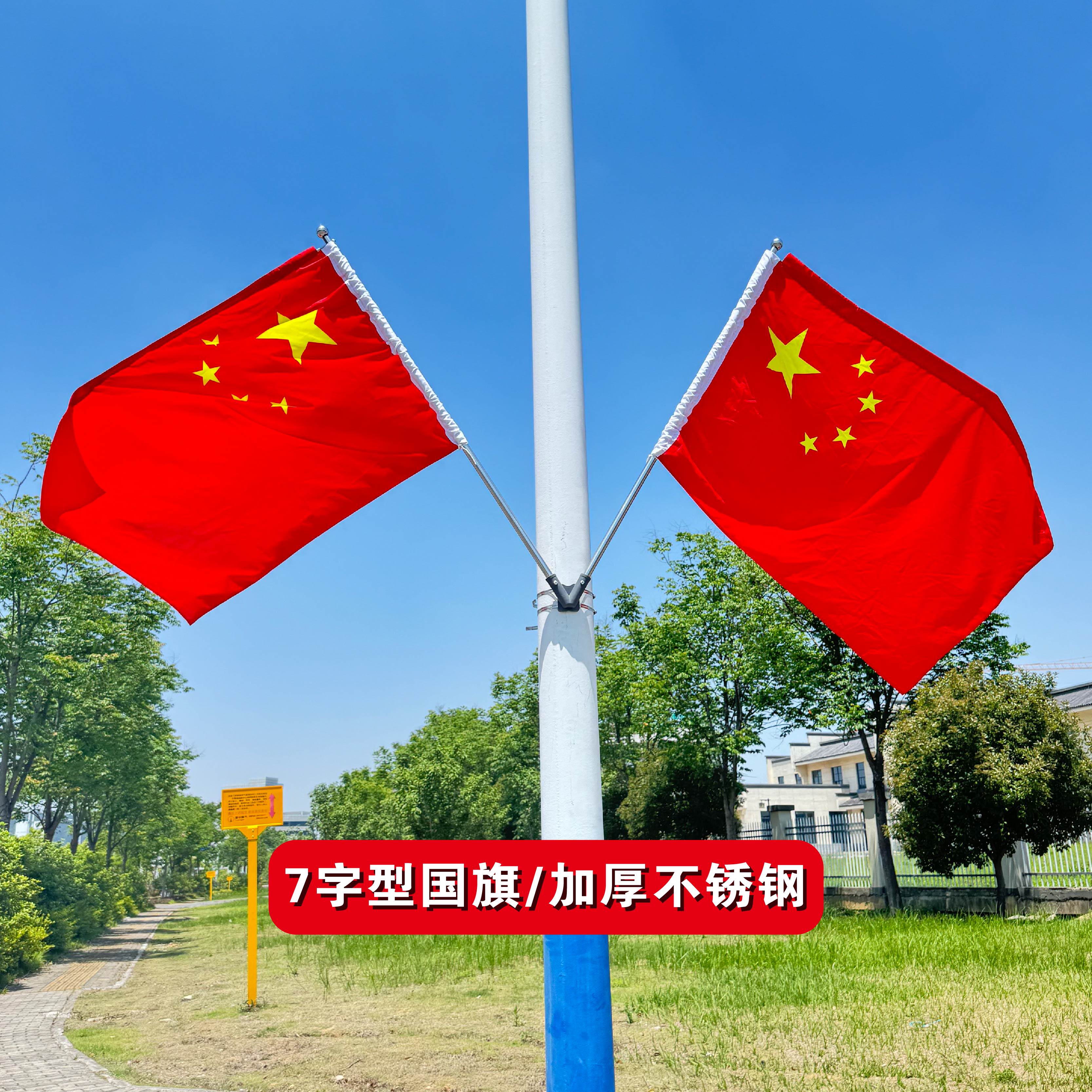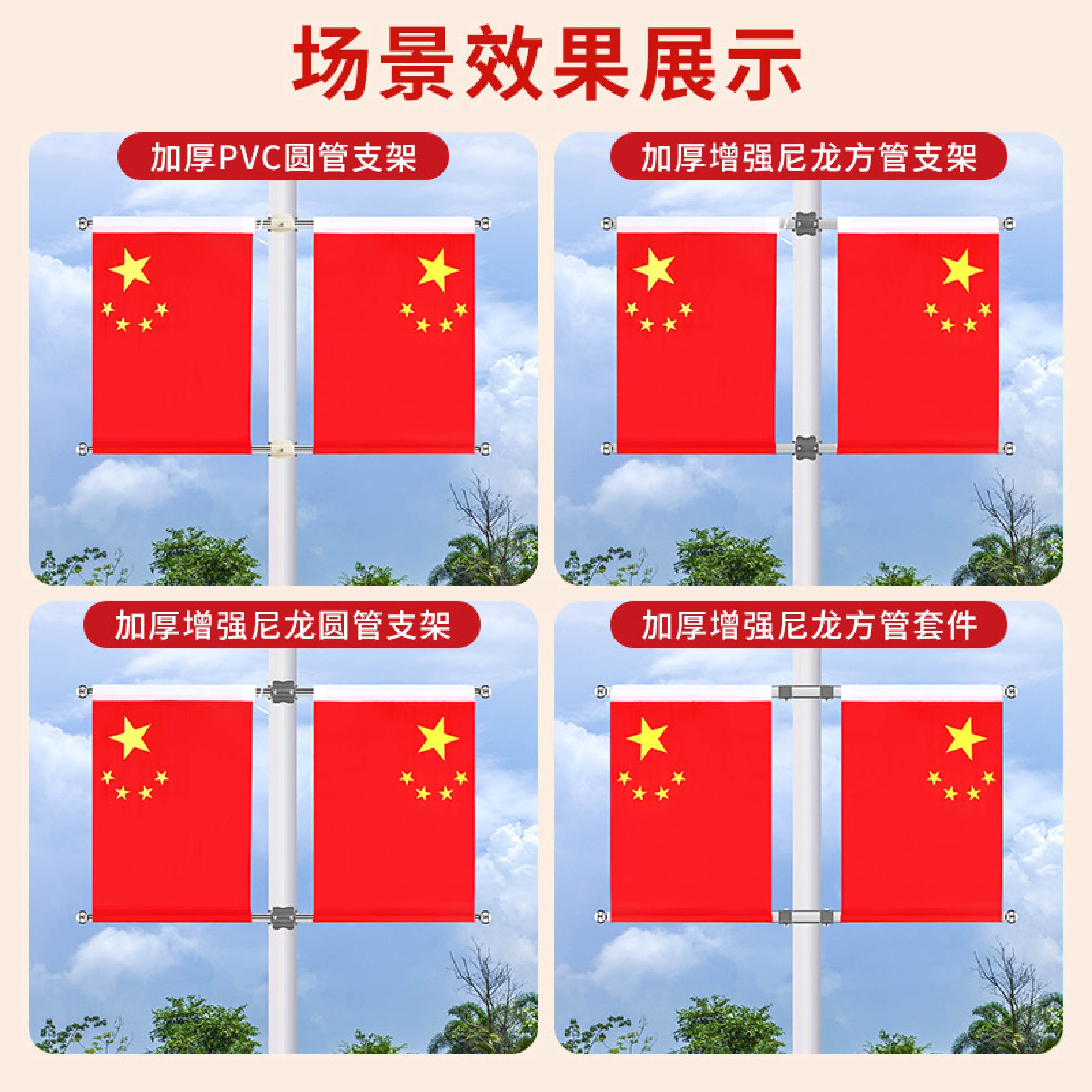 4号5号6号灯杆国旗党旗五星红旗街道马路道路电线杆路灯杆悬挂式带旗杆户外道旗v型斜插工字型国旗架子定制