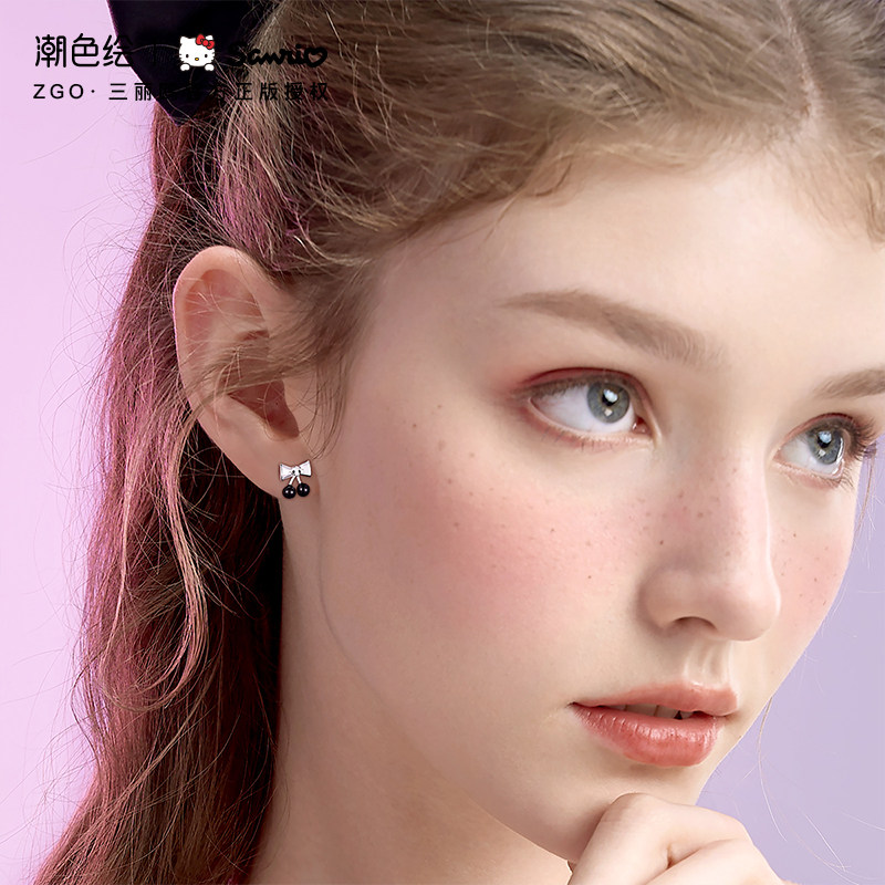 潮色绘x库洛米Kuromi耳钉纯银女秋冬小众巨好看独特耳环生日礼物