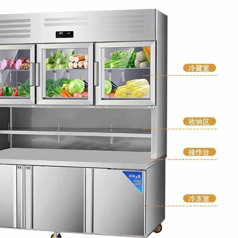 子母柜商用冷藏冷冻一体机厨房双温不锈钢展示冰柜冰箱操作工作台