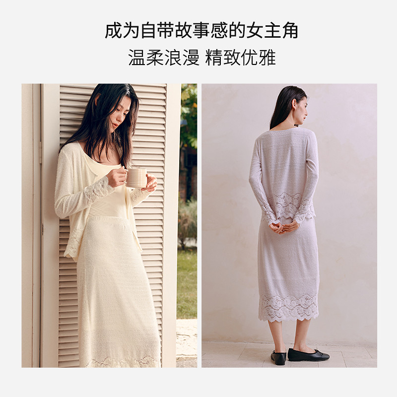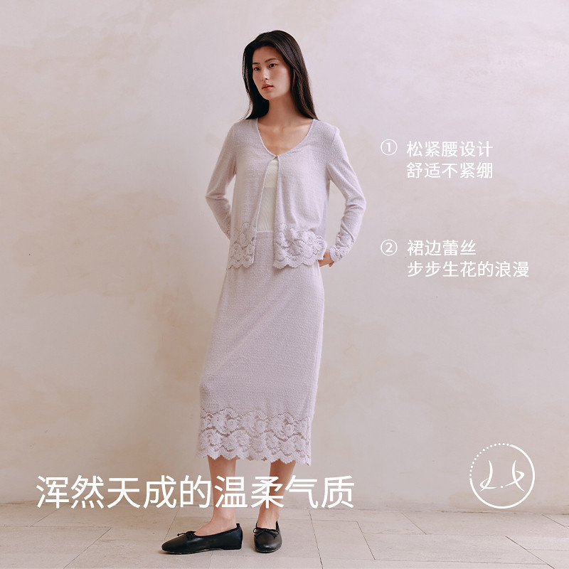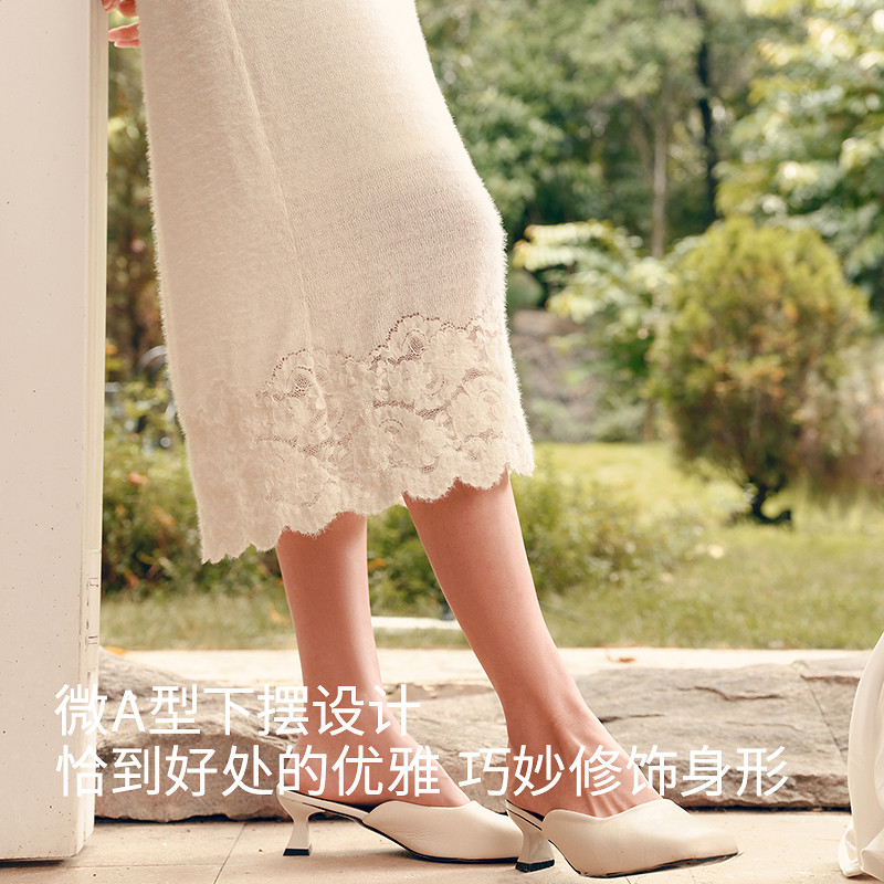YINERLIFE「羽毛纱」提花A字半身裙女士优雅绒毛蕾丝针织裙子
