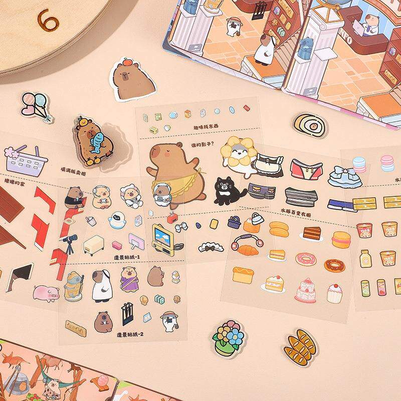 萌崽新款果冻贴纸安静书卡皮巴拉女孩免裁剪diy材料包儿童益智玩具
