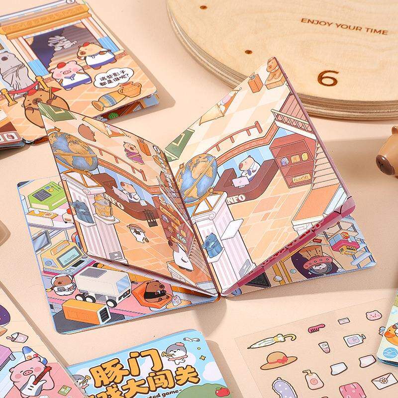2个卡皮巴拉游戏大闯关儿童趣味游戏组合本diy创意贴纸桌游玩具书