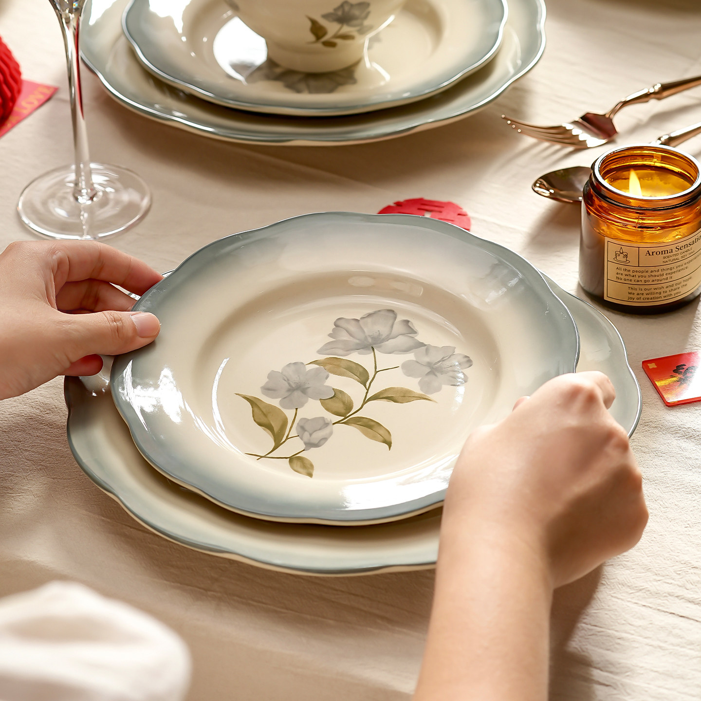 创意ins风高级感荷叶边陶瓷盘意面盘深盘西餐盘水果沙拉碗酸奶碗