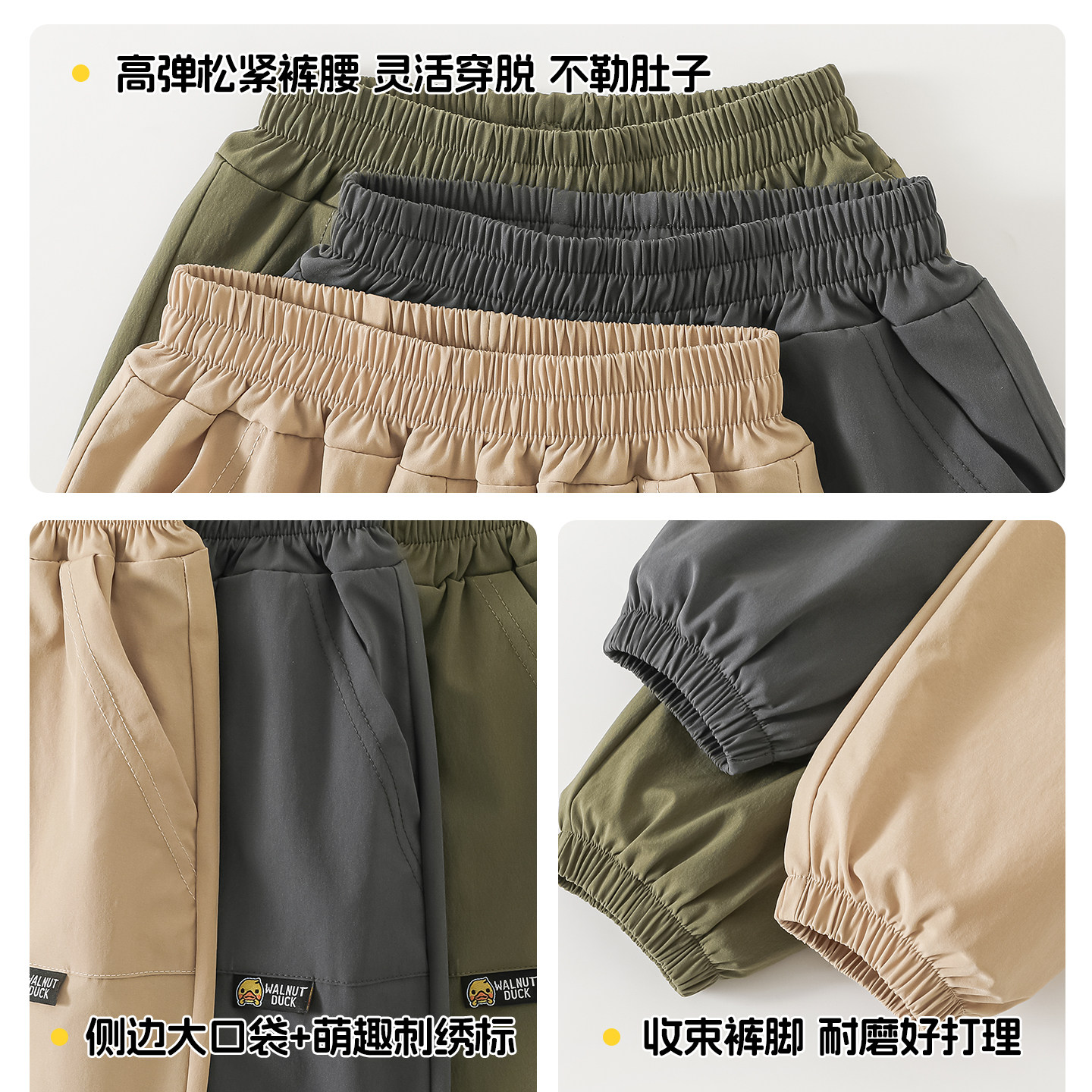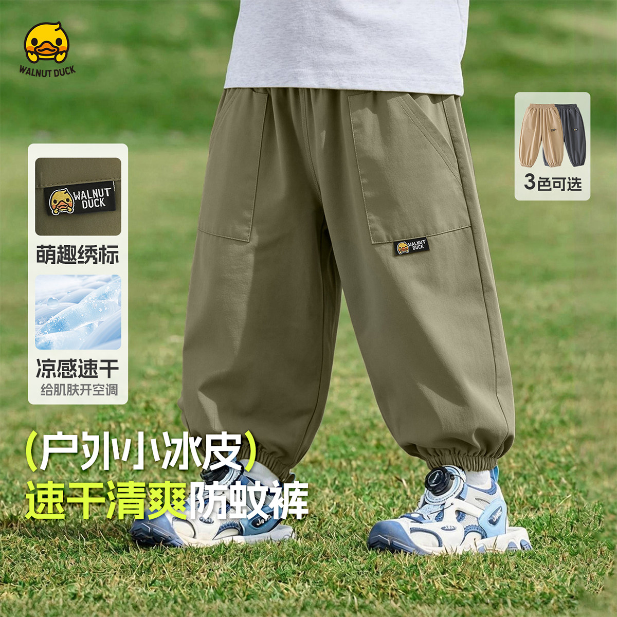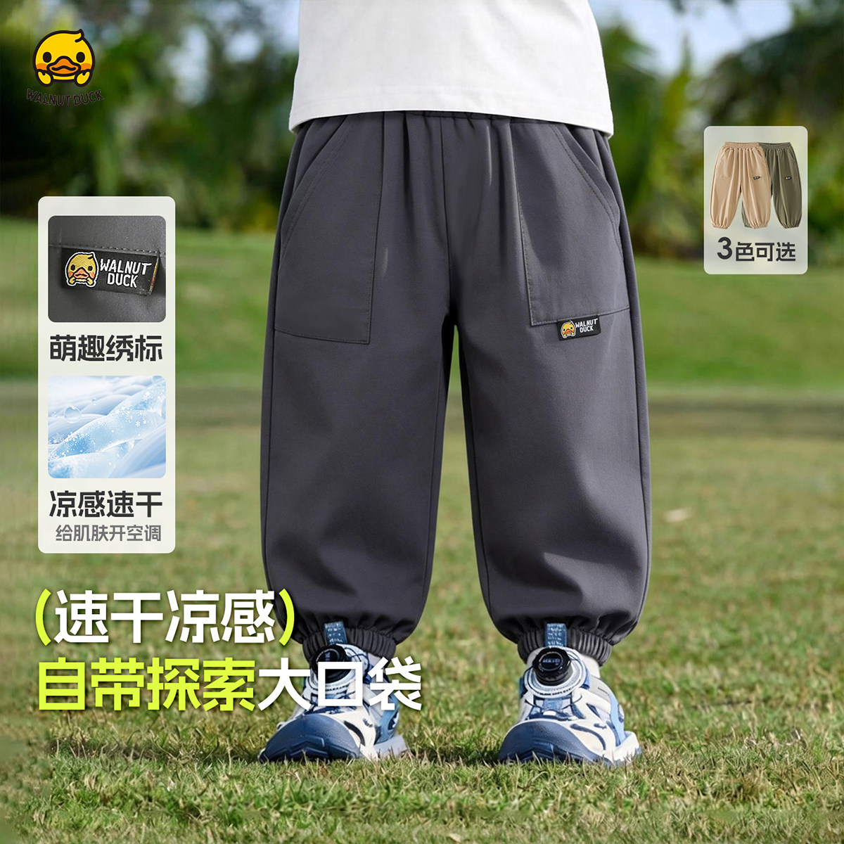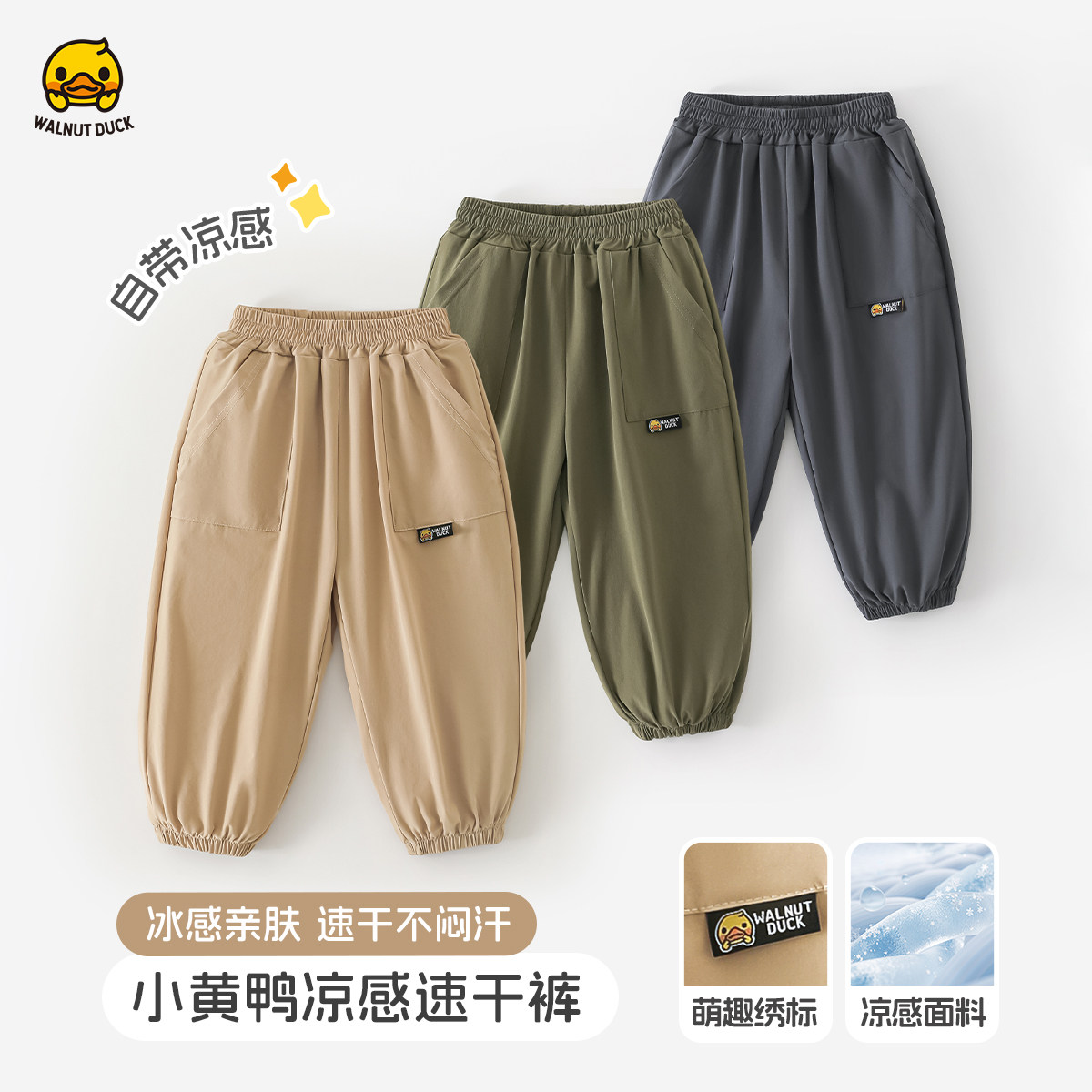 核桃小黄鸭男女儿童冰丝速干束脚裤男童夏季薄款透气长裤运动裤