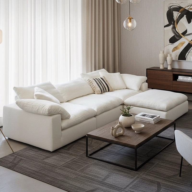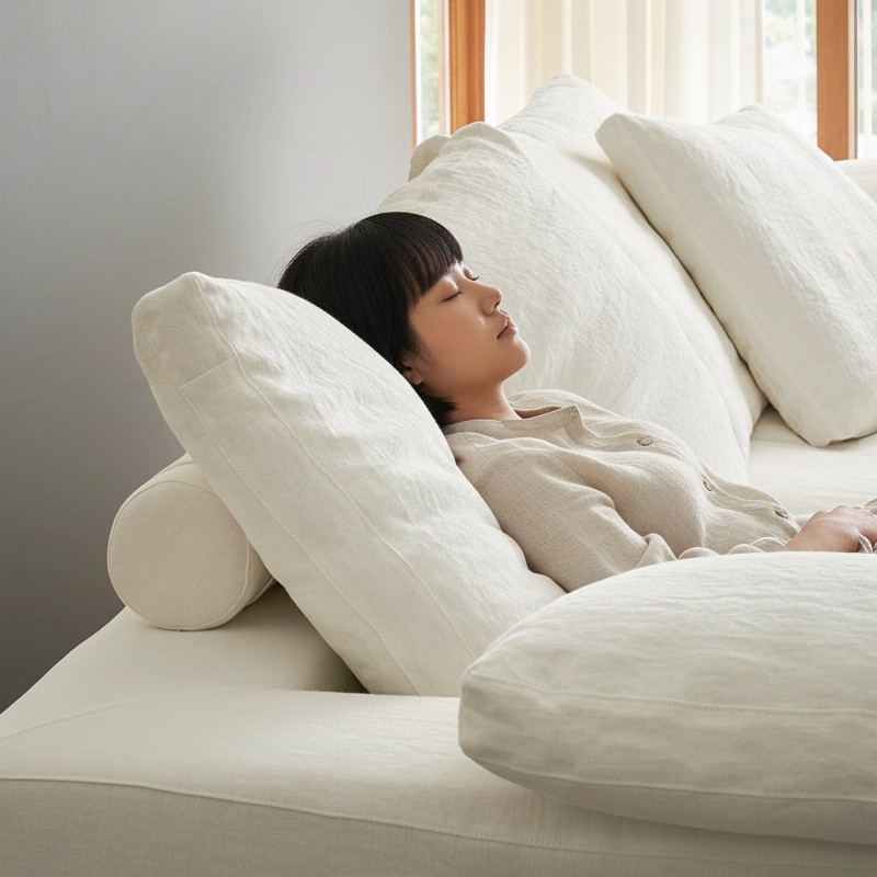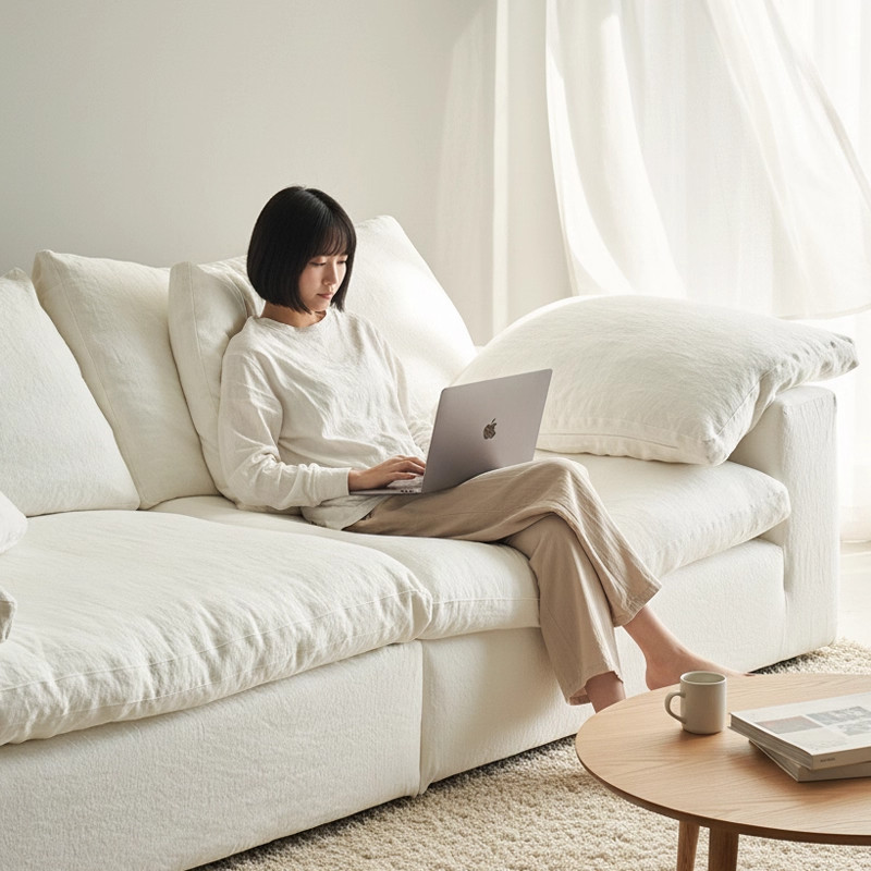 Cloud云沙发亚麻中古风羽绒直排客厅布艺可拆洗棉麻模块沙发26款