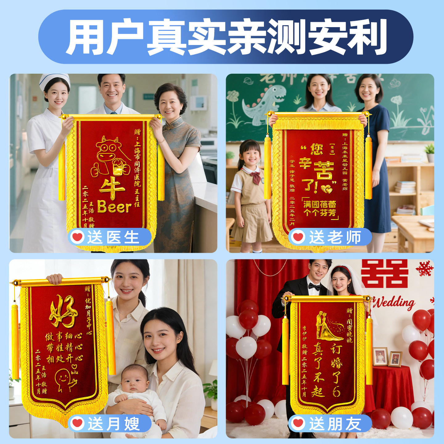 锦旗定制定做感谢医生护士送月嫂幼儿园老师宠物医院民警物业服务月子中心医护人员驾校教练律师旌旗订做制作