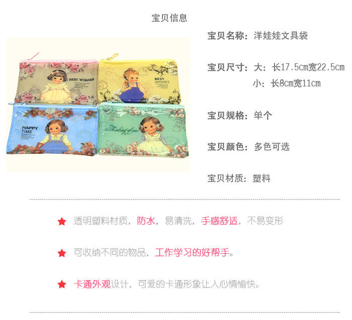 试卷袋文件袋女孩小学生透明塑料档案拉链收纳便携资料小洋娃娃包