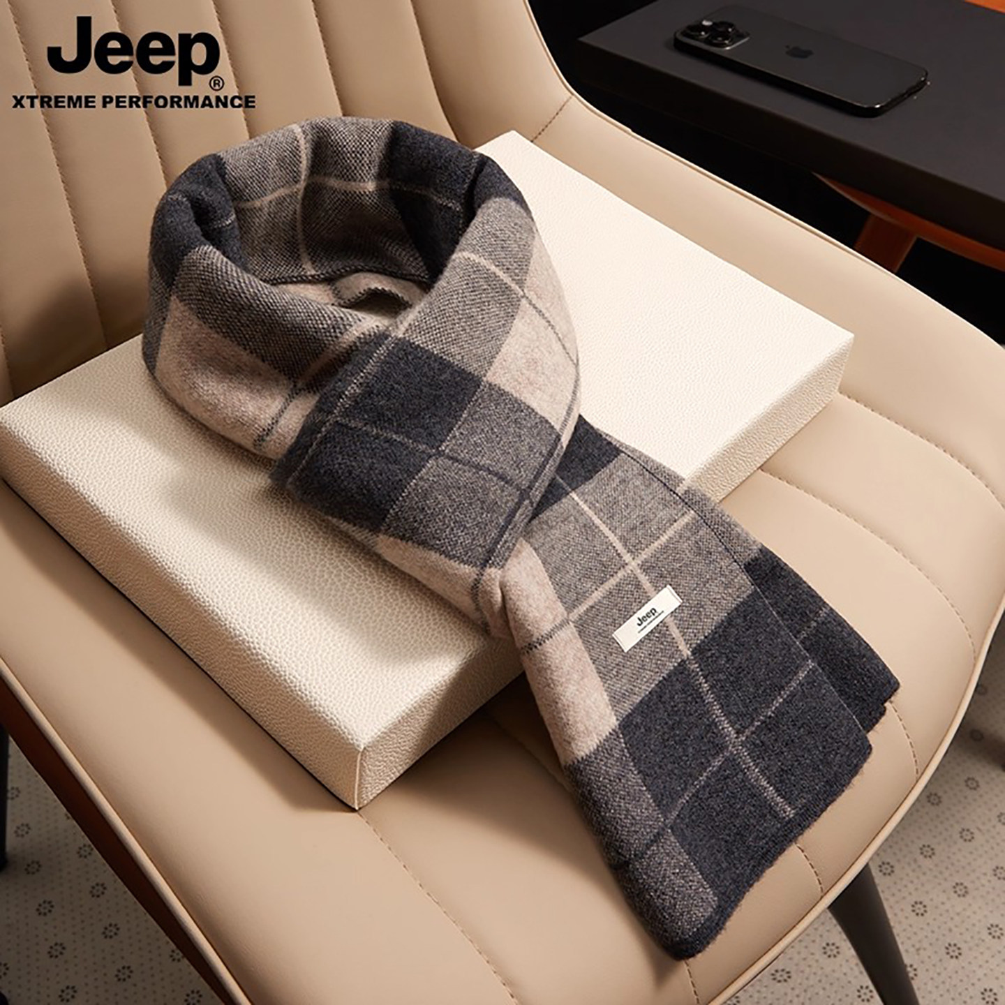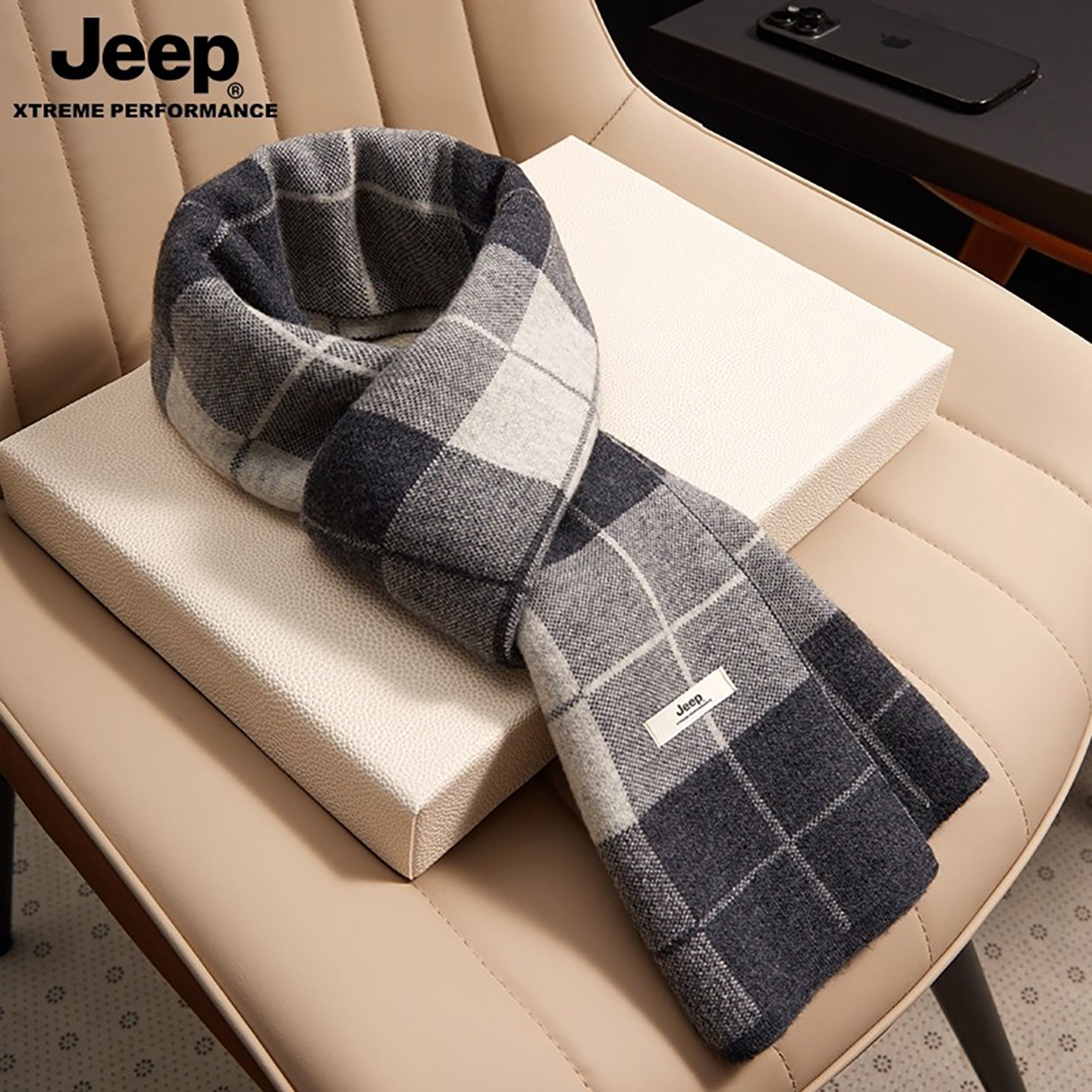 jeep吉普围巾男士生日礼物礼盒装送男友秋冬保暖针织秋冬季围脖男