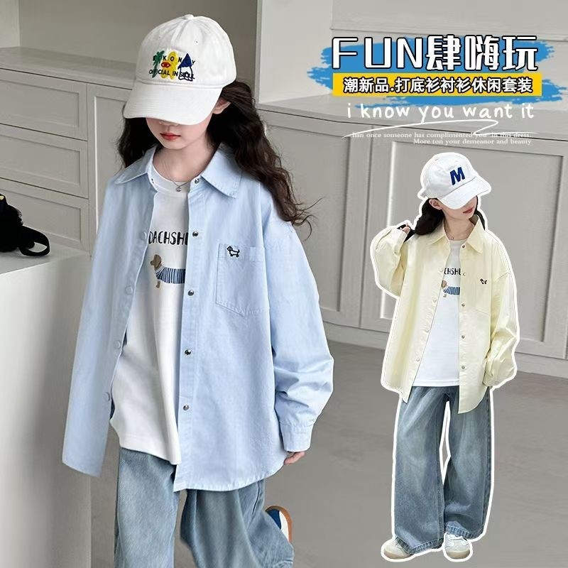 女童衬衫春秋2025新款儿童百搭长袖衬衣初中生女孩薄外套秋装上衣