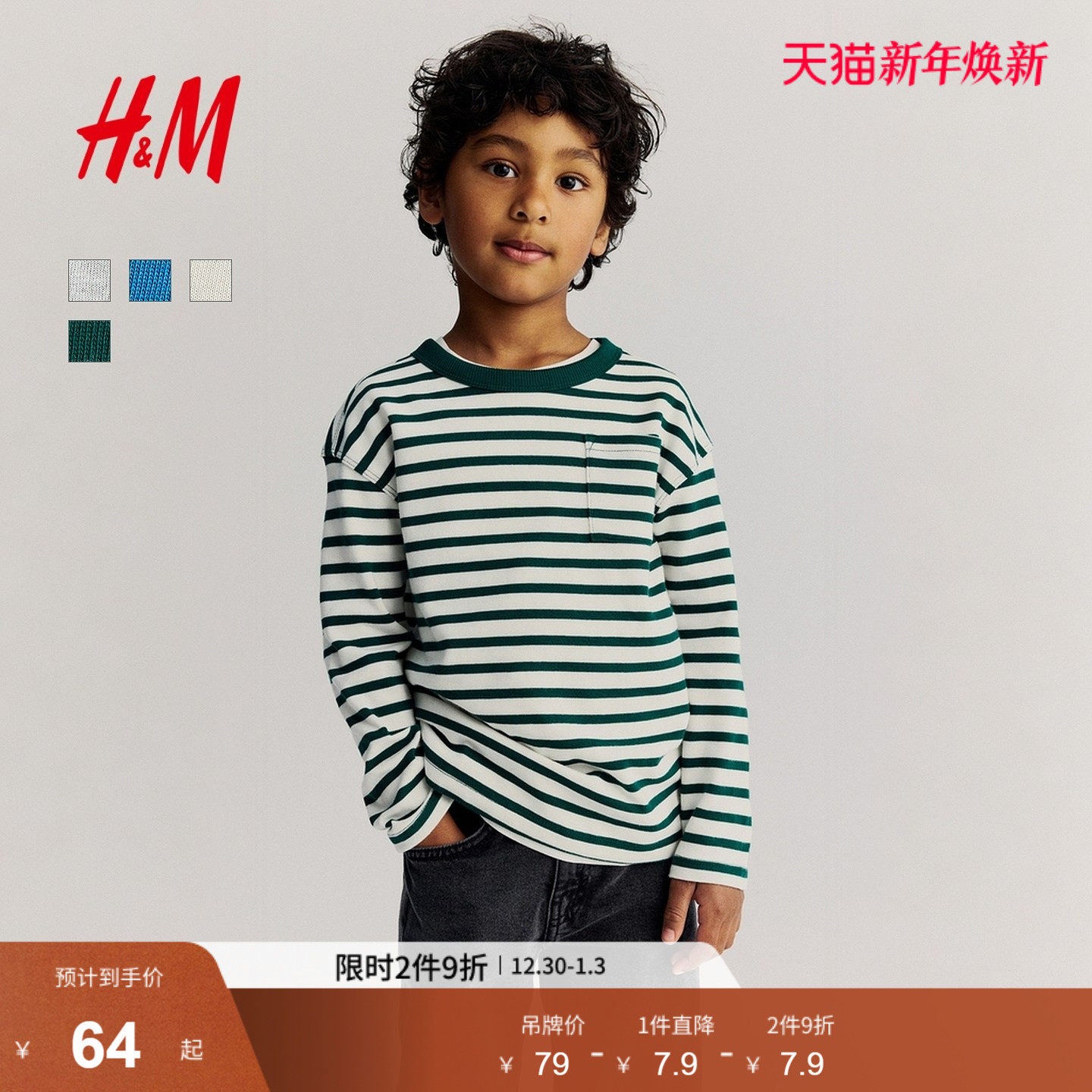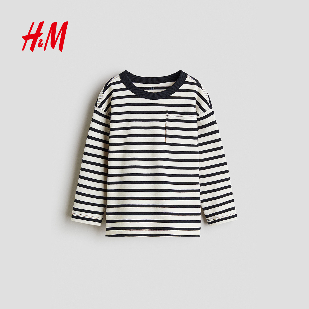 HM童装儿童男童T恤冬季圆领长袖柔软休闲条纹内搭上衣1199862