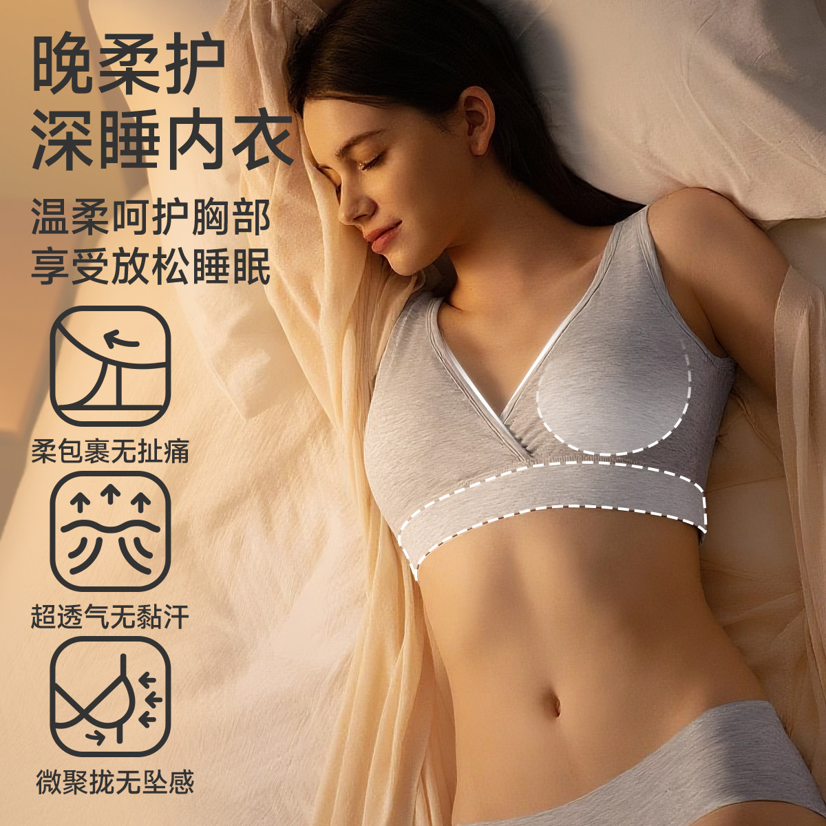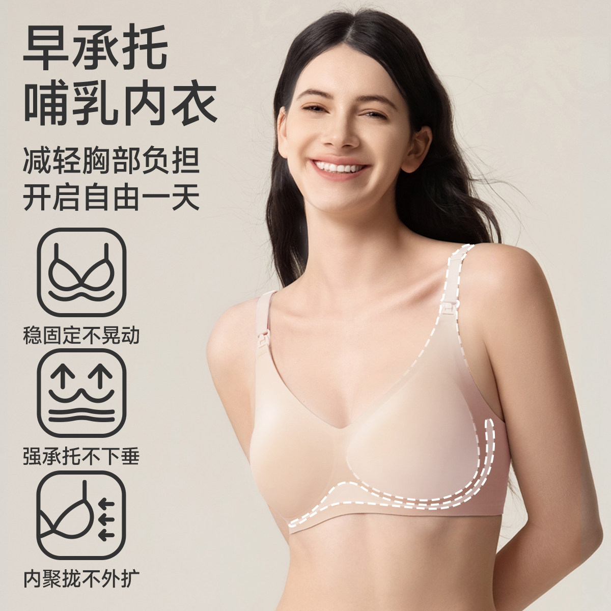 【早撑晚护】婧麒无痕孕妇哺乳内衣聚拢怀孕期专用背心式睡眠文胸