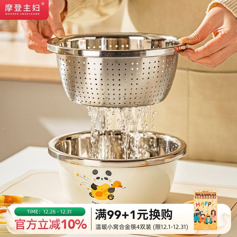 摩登主妇304不锈钢盆烫洗奶瓶专用盆婴儿奶瓶清洗盆洗菜盆沥水篮