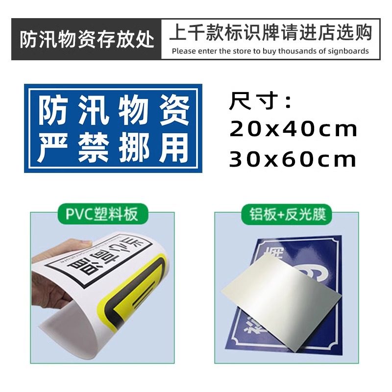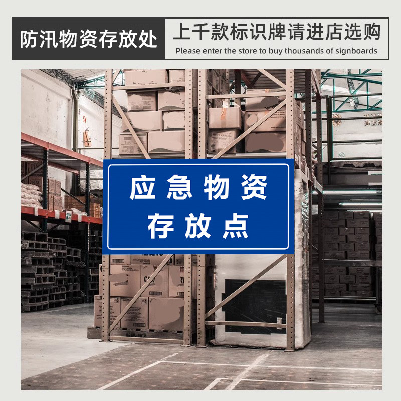 应急物资仓库标识牌贴纸防汛物资应急救援严禁挪用厂区抗洪救灾警示牌户外防洪沙袋堆放点救援物资放置点定制