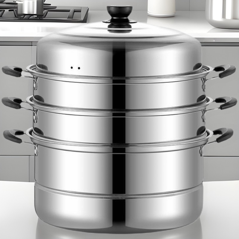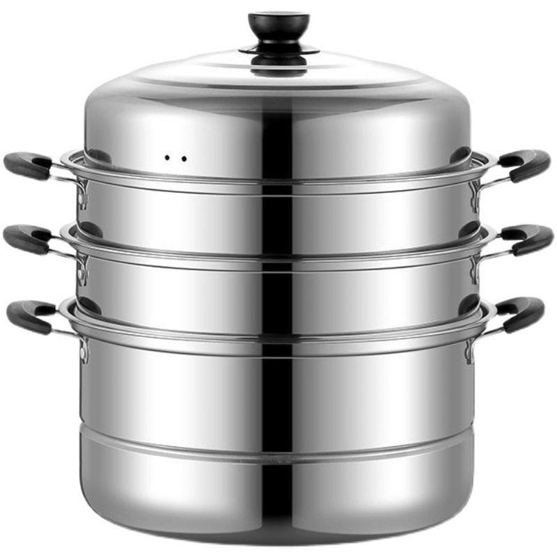 不锈钢三层蒸锅家用特厚双层蒸馒头商用多层汤锅燃气电磁炉通用