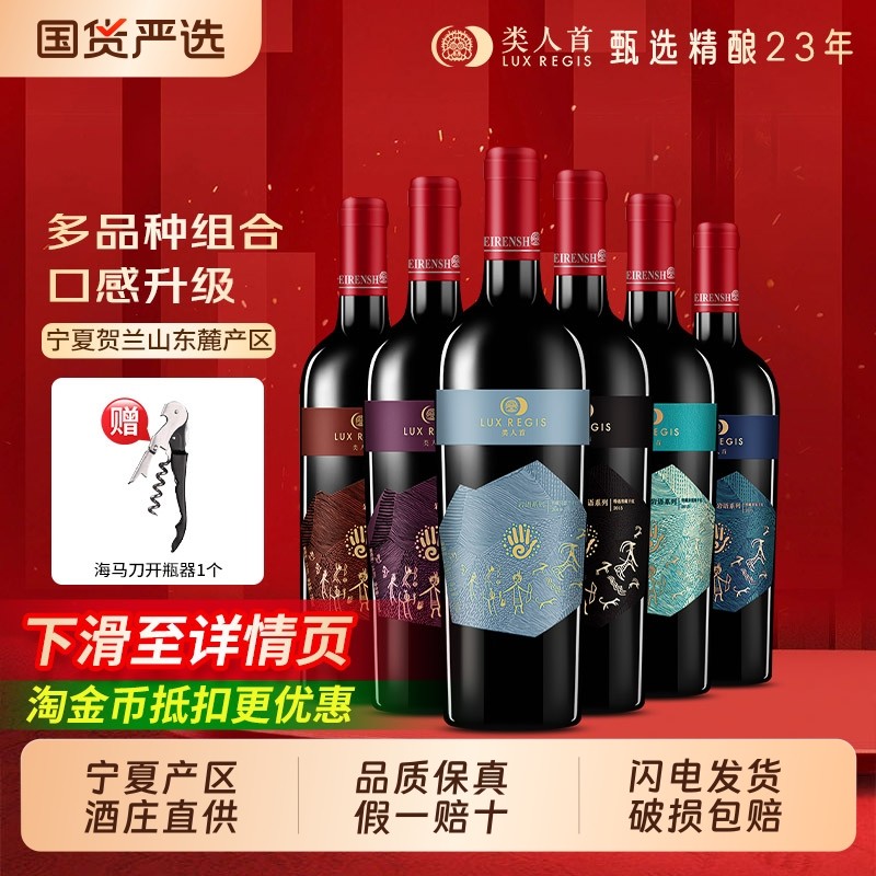 类人首 宁夏红酒岩语赤霞珠马瑟兰美乐干红组合750ml*6支装葡萄酒