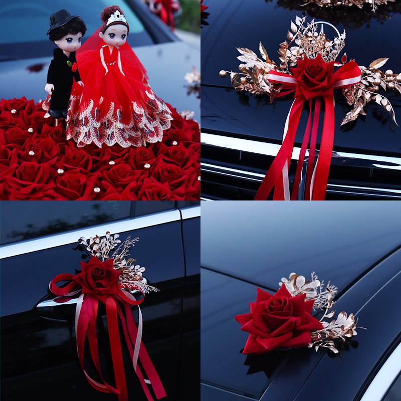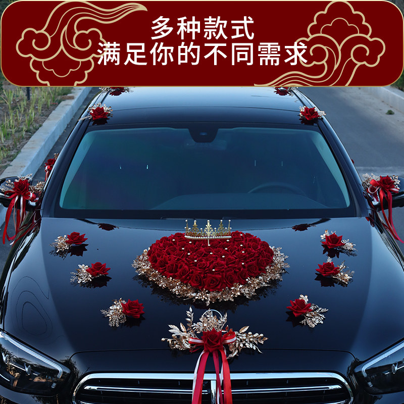 主婚车装饰车头花结婚头车高级花车布置婚礼接亲车队拉花全套吸盘
