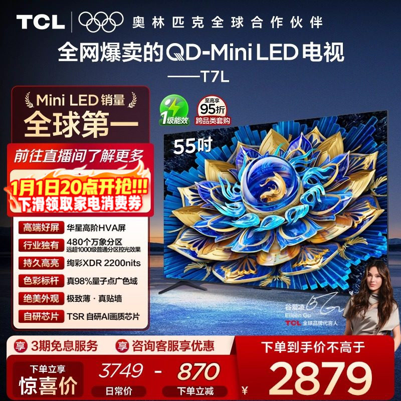 TCL电视 55T7L 55英寸 QD-Mini LED 万象分区 电视机以旧换新官方