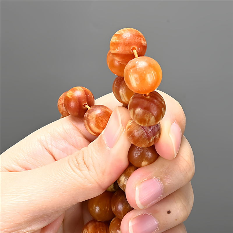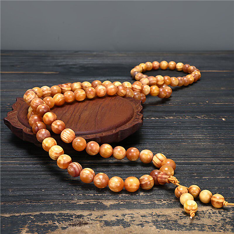 长白山沉香松明子手链 108颗透光琥珀木佛珠 玉化沉香手串