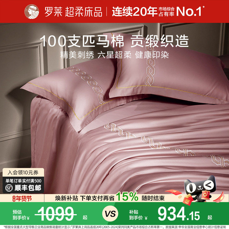 【断码清仓】罗莱家纺高端轻奢100支进口匹马棉四件套刺绣轻奢