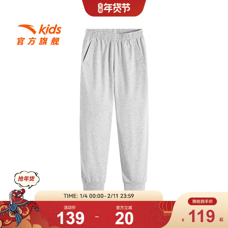 安踏儿童男大童针织运动长裤2025夏季新款透气舒适凉感中大童裤子